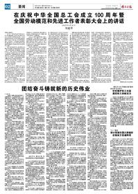 在庆祝中华全国总工会成立100周年暨 全国劳动模范和先进工作者表彰大会上的讲话