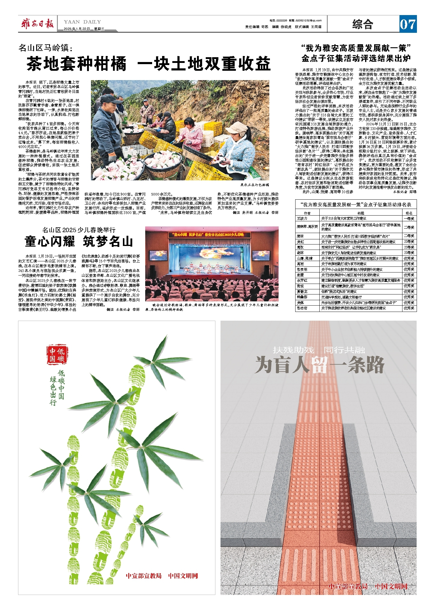 本报讯 1月19日,由中共雅安市委统战部、雅安市融媒体中心主办的 “我为雅安高质量发展献一策”金点子征集活动落幕,评选结果出炉。