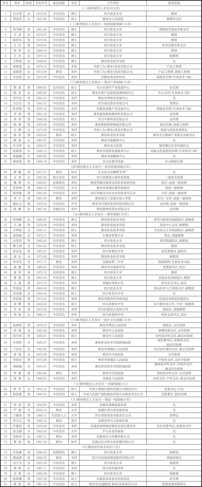 雅安市2024年“雅州英才”工程拟入选对象(81人)