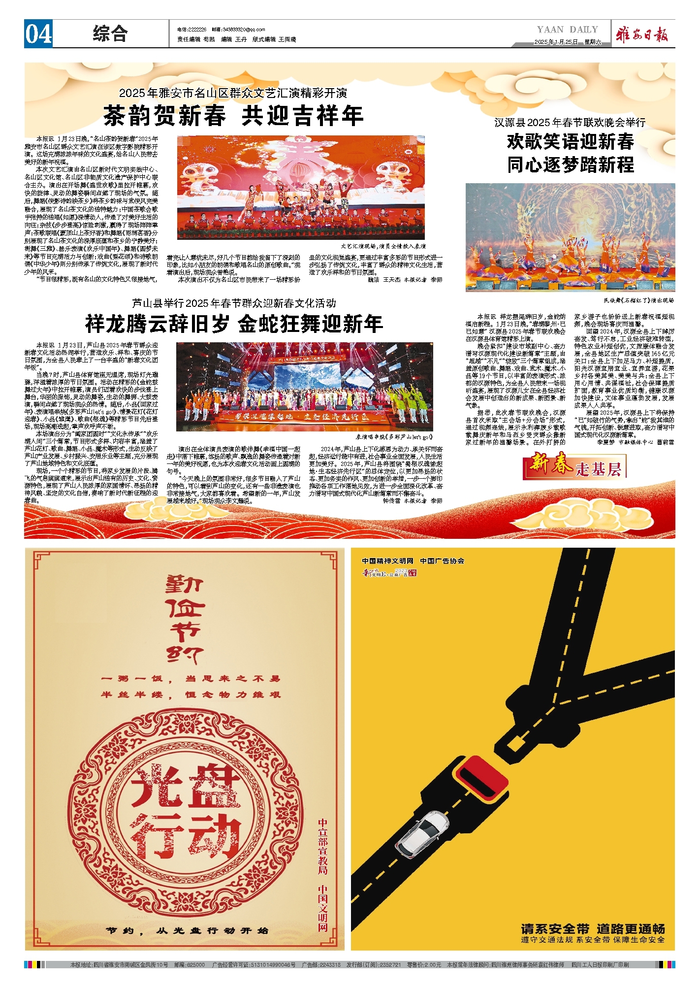 2024年,芦山县上下化感恩为动力、承关怀而奋起,经济运行稳中有进,社会事业全面发展,人民生活更加美好。2025年,芦山县将围绕“蜀根汉魂缘起地·生态经济先行区”的总体定位,以更加昂扬的状态、更加务实的作风、更加创新的举措,一步一个脚印推动各项工作落地见效,为进一步全面深化改革、奋力谱写中国式现代化芦山新篇章而不懈奋斗。