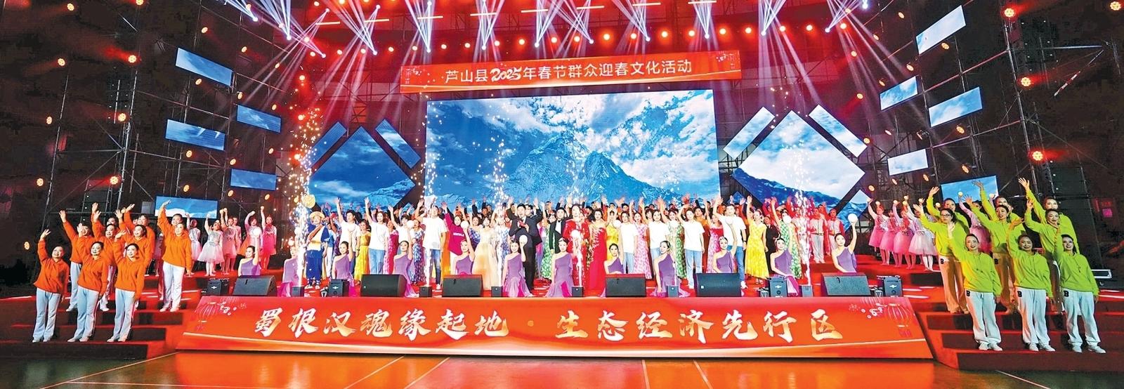 现场,一个个精彩的节目,将家乡发展的片段、腾飞的气息娓娓道来,展示出芦山独有的历史、文化、资源特色,展现了芦山人民浓厚的家国情怀、昂扬的精神风貌、坚定的文化自信,奏响了新时代新征程的迎春曲。