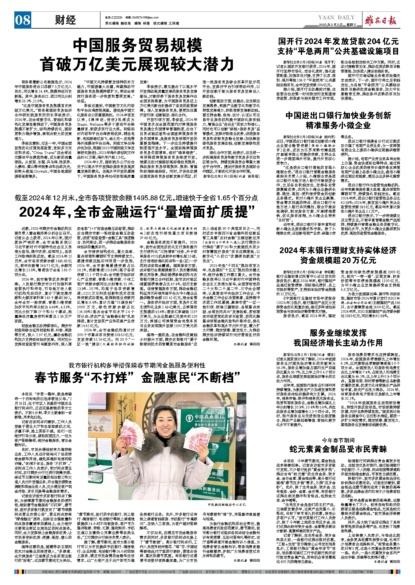 进出口银行作为政策性金融机构,近年来聚焦服务重大战略、重点领域和薄弱环节,持续强化职能定位。截至2024年末,进出口银行政策性业务占比62.59%;2024年,新发放小微外贸企业政策性贷款393亿元,截至年末累计服务小微外贸企业2.2万户。