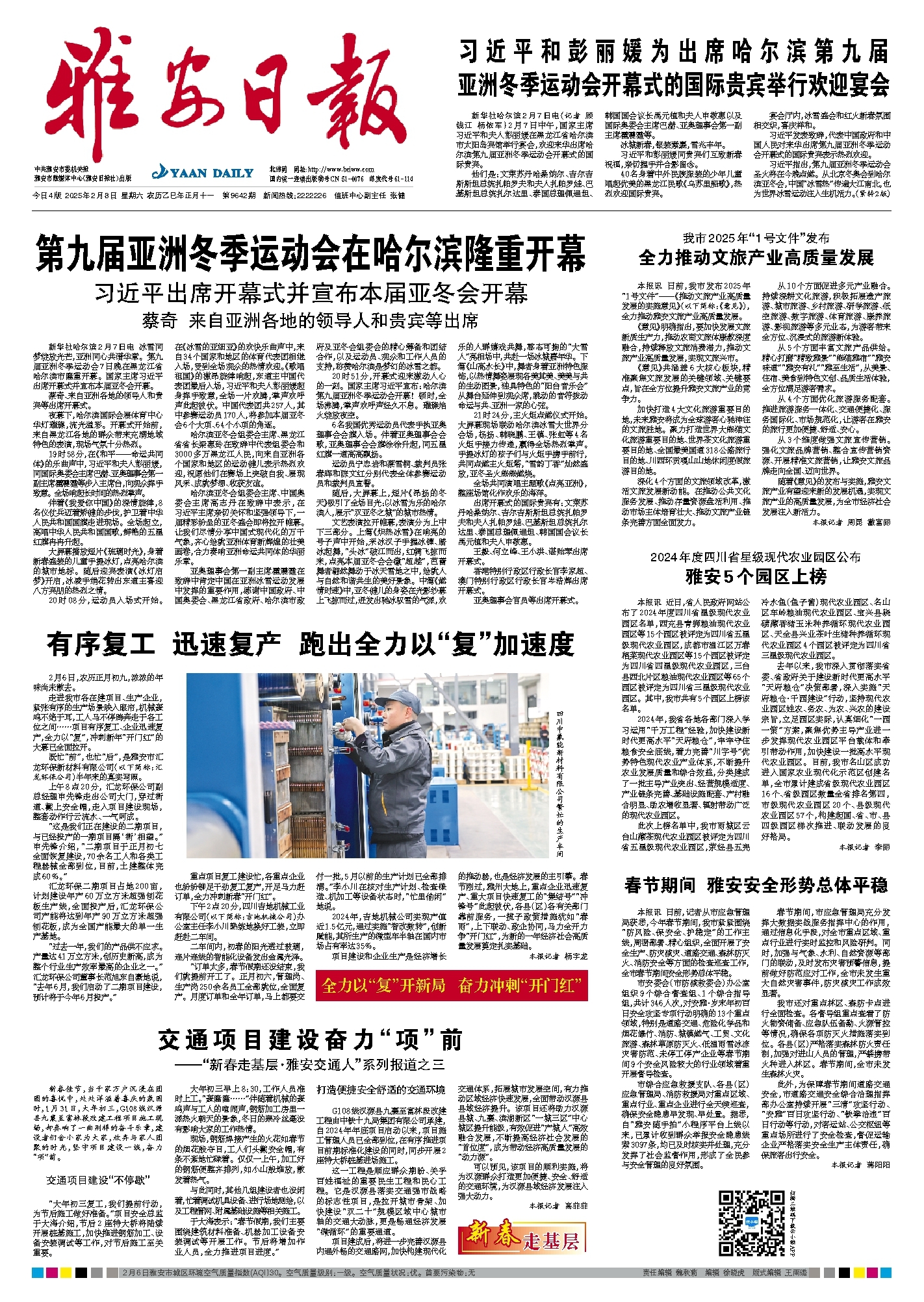 新华社哈尔滨2月7日电 冰雪同梦绽放光芒,亚洲同心共谱华章。第九届亚洲冬季运动会7日晚在黑龙江省哈尔滨市隆重开幕。国家主席习近平出席开幕式并宣布本届亚冬会开幕。