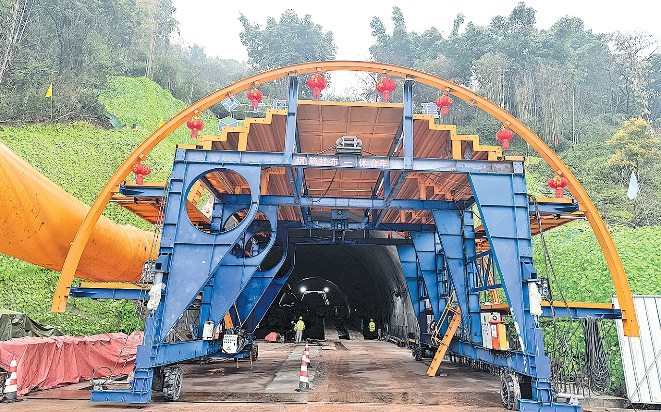在数十公里外的青鼻山隧道2号及附属桥梁工程施工现场,挖掘机、钢筋挂布一体台车等设施设备开足马力、满负荷运转,作业人员在各自岗位上忙碌而有序地工作。