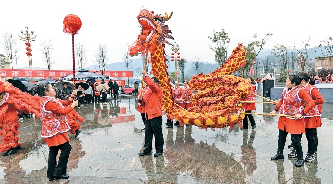 本报讯 2月12日,天全县2025年“千龙千狮闹元宵”民俗巡游暨第三届元宵喜乐会,在蒙蒙春雨中热闹上演。