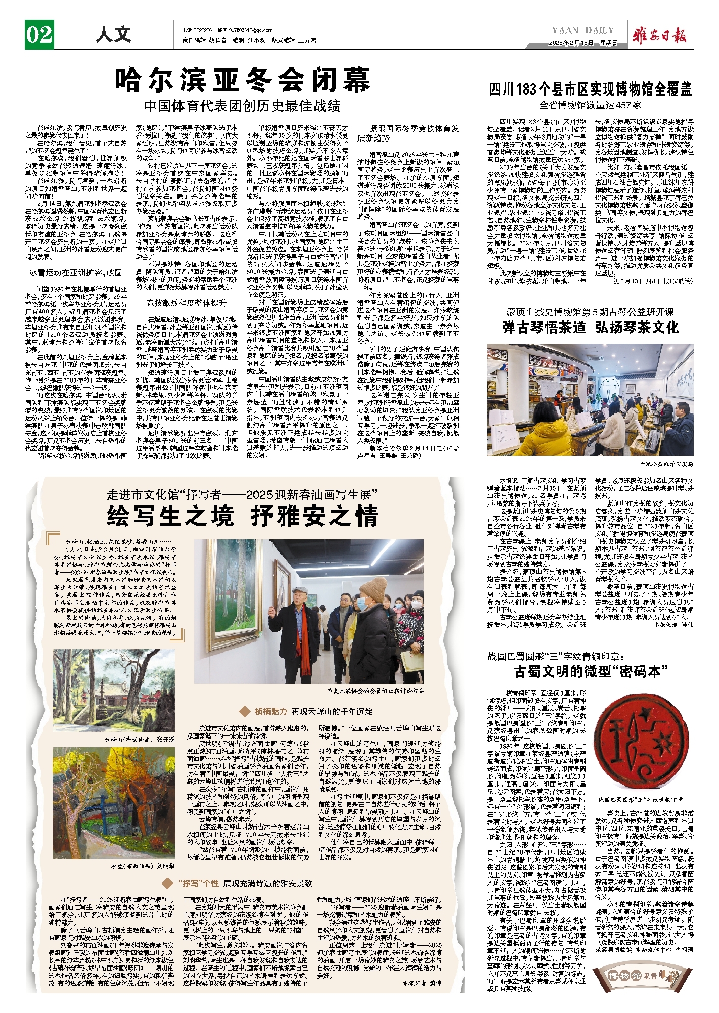 1月21日起至2月21日,由四川省油画学会、雅安市文化馆主办,雅安市美术馆、雅安市美术家协会、雅安市群众文化学会承办的“抒写者——2025迎新春油画写生展”在市文化馆展出。