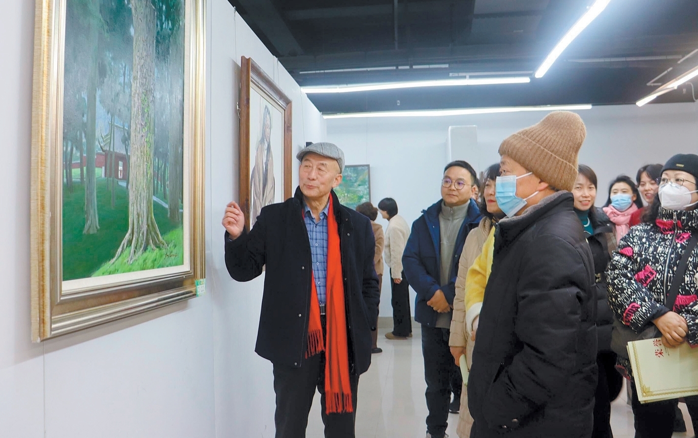刘智尹的布面油画《千年黑砂非遗传承与发展组画》、马骁的布面油画《茶香四溢满山川》、刘长弓的纸本水粉《林中小舟》、贾和清的纸本设色《古镇年猪节》、胡宁布面油画《暖阳》……展出的这些作品风格多样,有的细腻写实,有的粗犷奔放,有的色彩鲜艳,有的色调沉稳,但无一不展现了画家们对自然和生活的热爱。