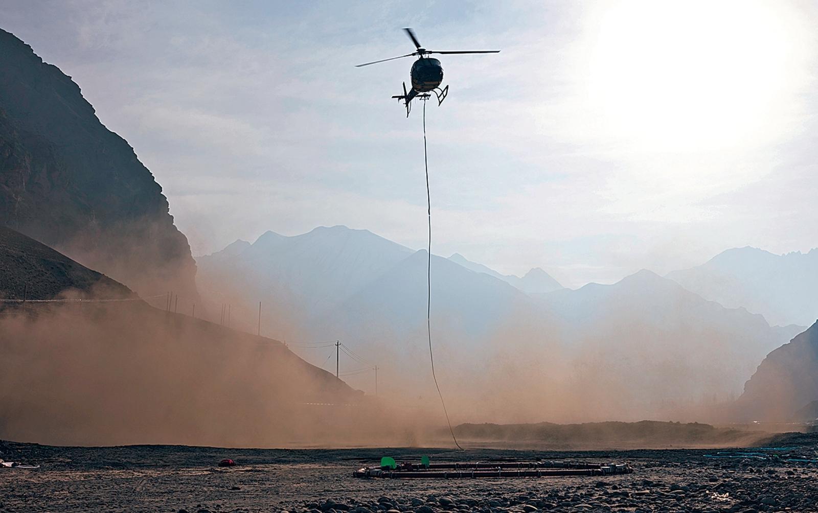 图为2024年12月21日,航空大地电磁探测系统在新疆和田地区进行飞行探测作业。