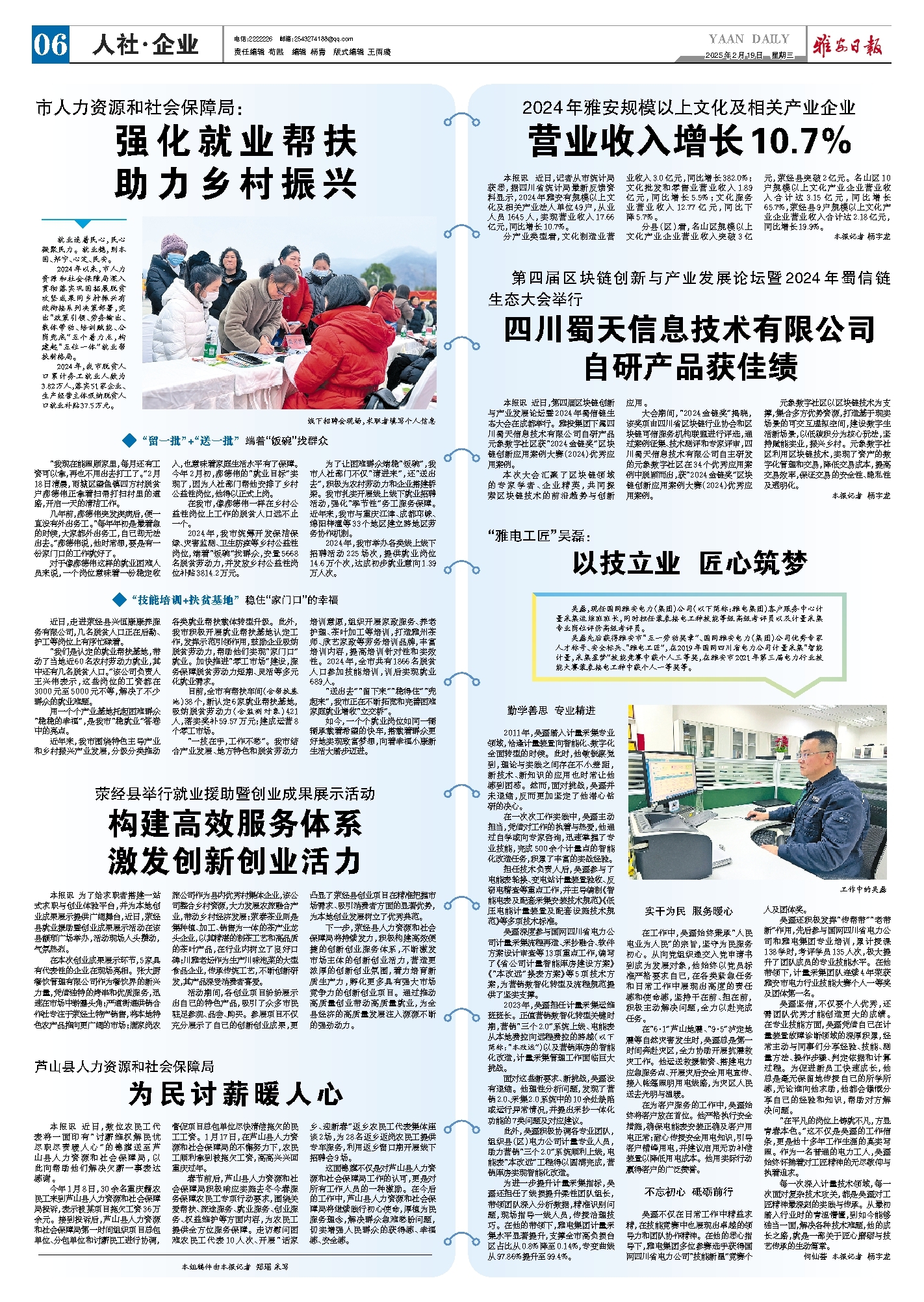 春节前后,芦山县人力资源和社会保障局积极响应实施去冬今春服务保障农民工专项行动要求,围绕关爱帮扶、旅途服务、就业服务、创业服务、权益维护等方面内容,为农民工提供全方位服务保障。走访慰问困难农民工代表10人次、开展“话家乡、迎新春”返乡农民工代表集体座谈2场,为28名返乡返岗农民工提供专车服务,利用返乡窗口期开展线下招聘会9场。