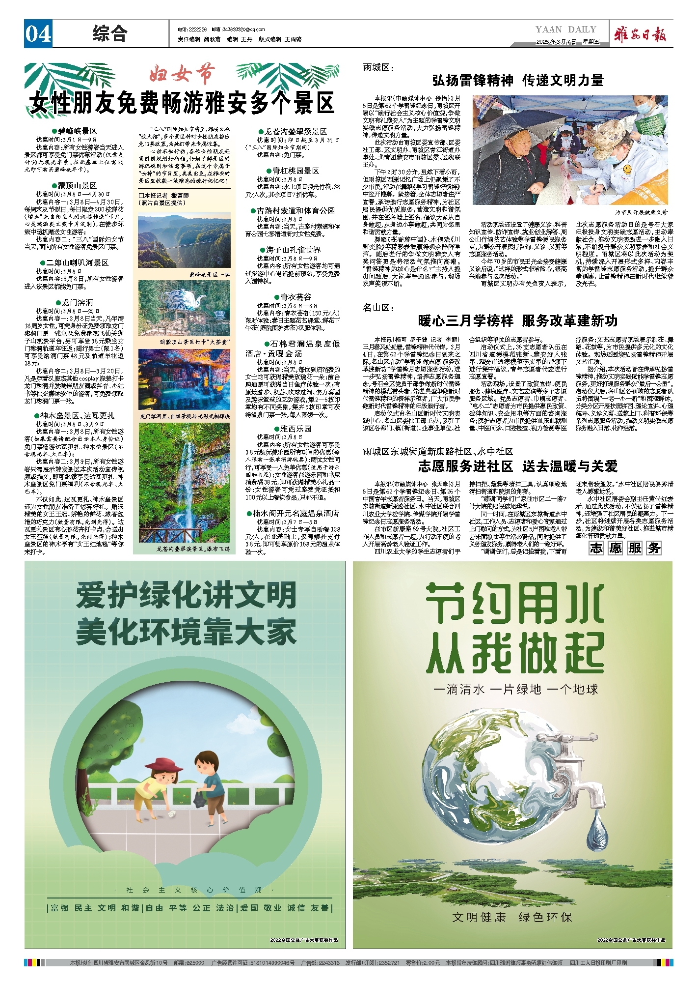 本报讯(市融媒体中心 张天幸)3月5日是第62个学雷锋纪念日、第26个中国青年志愿者服务日。当天,雨城区东城街道新康路社区、水中社区联合四川农业大学法学院、传媒学院开展学雷锋纪念日志愿服务活动。