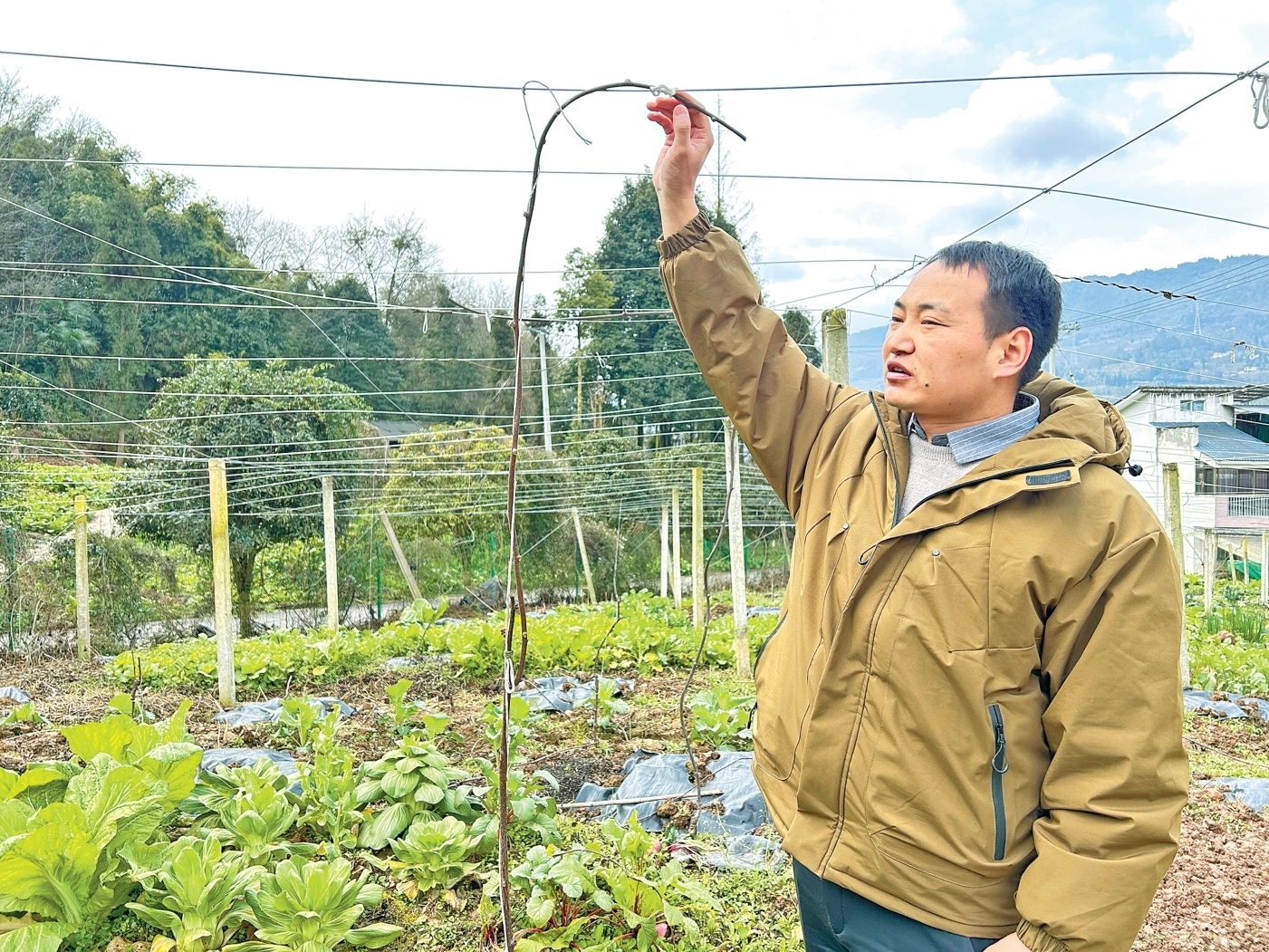 李上云在名山区万古镇的试验地里查看猕猴桃植株长势