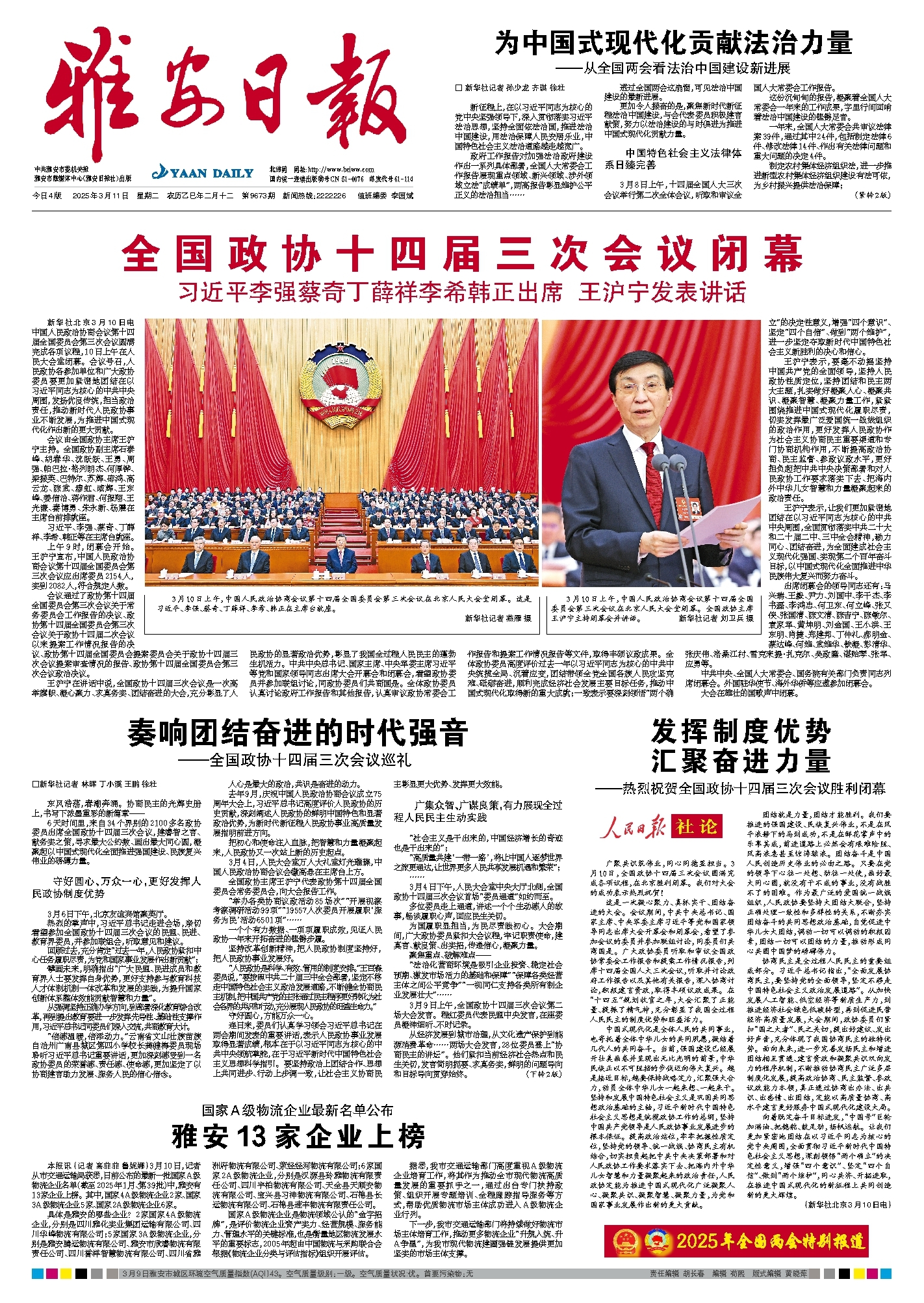 本报讯 (记者 高菲菲 鲁妮娜)3月10日,记者从市交通运输局获悉,日前公布的最新一批国家A级物流企业名单(截至2025年1月、第39批)中,雅安有13家企业上榜。其中,国家4A级物流企业2家、国家3A级物流企业5家、国家2A级物流企业6家。