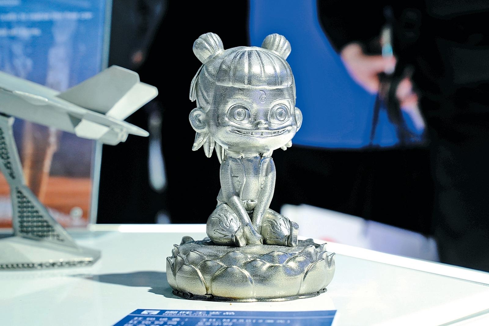 3月17日在第十一届亚洲3D打印、增材制造展览会上展示的3D打印的哪吒工艺品。 当日,第十一届亚洲3D打印、增材制造展览会(简称TCT亚洲展)在国家会展中心(上海)开幕。本届展会为期3天,展览面积超过40000平方米。