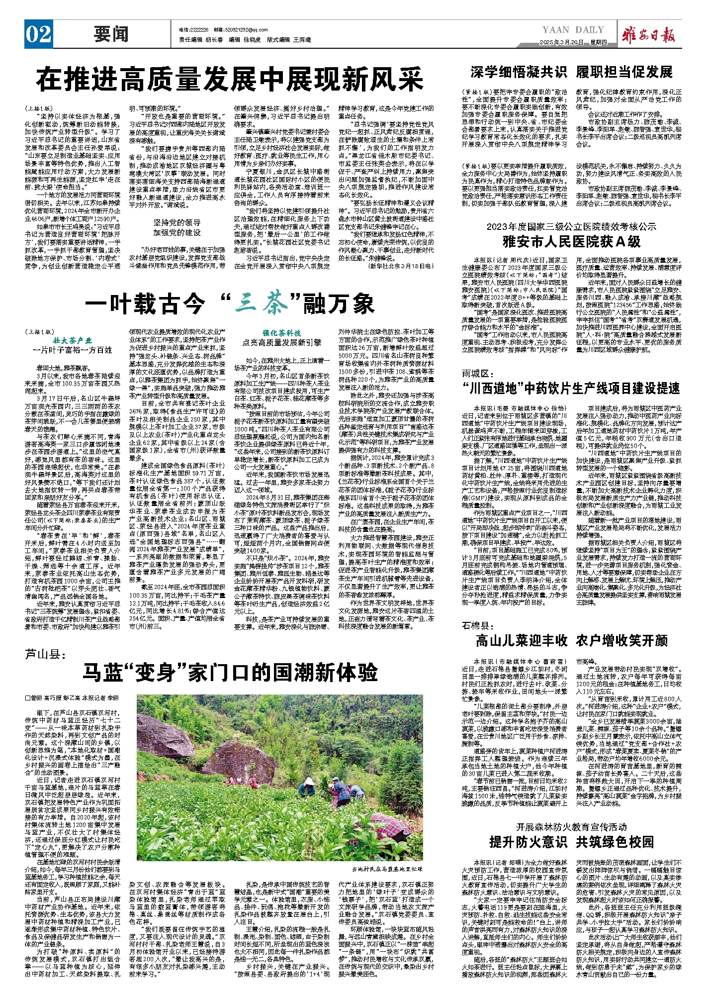 科技,是茶产业可持续发展的重要支撑。近年来,雅安深化与陈宗懋、刘仲华院士在绿色防控、茶叶加工等方面的合作,示范推广绿色茶叶种植面积达26万亩,新增鲜叶效益超过5000万元。四川省名山茶树良种繁育场收集省内外茶树种质资源材料1500多份,引进中茶108、紫鹃等茶树品种220个,为雅茶产业的高质量发展注入新的活力。