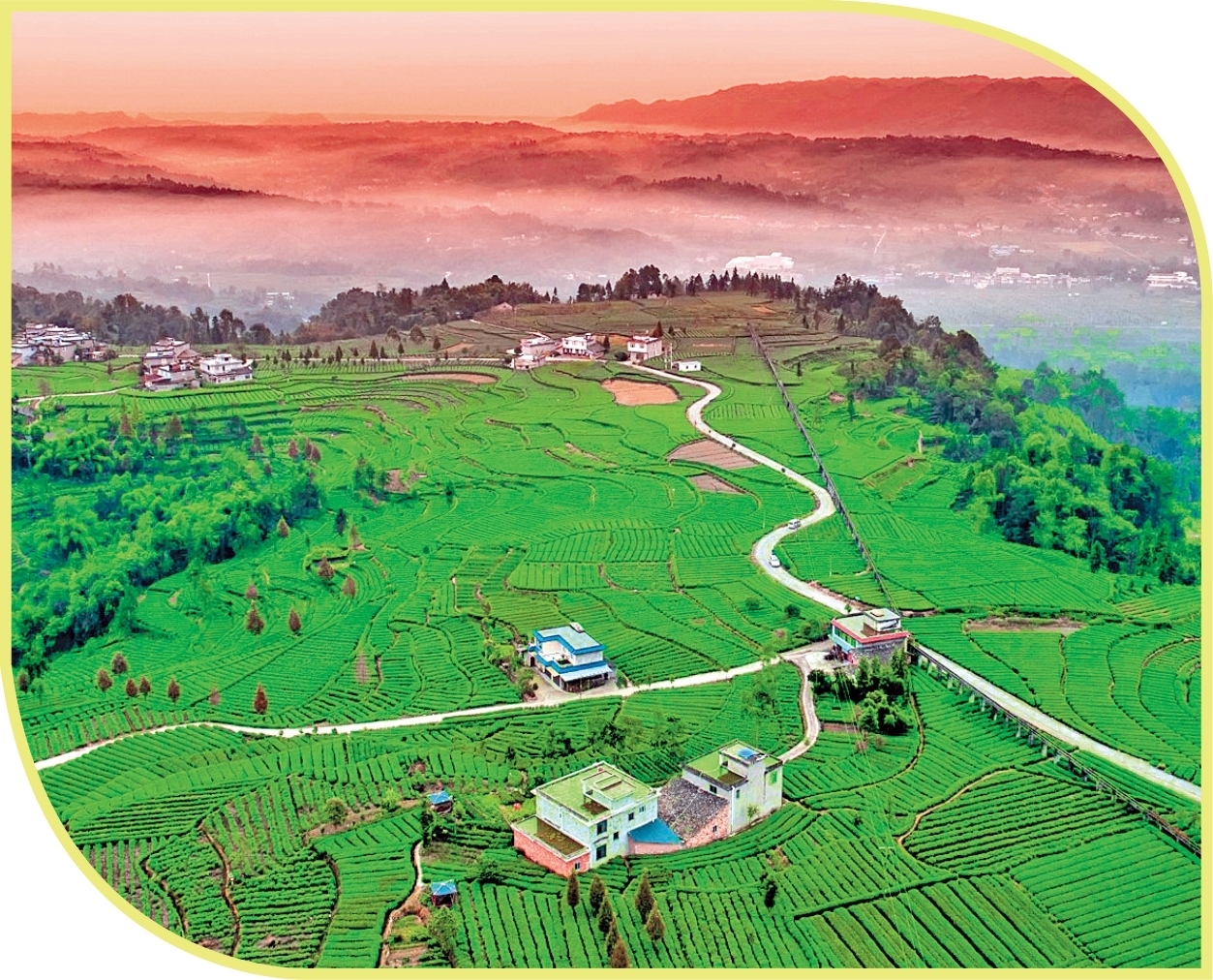 晨光中的雨城区草坝镇塘坝村茶园美景
