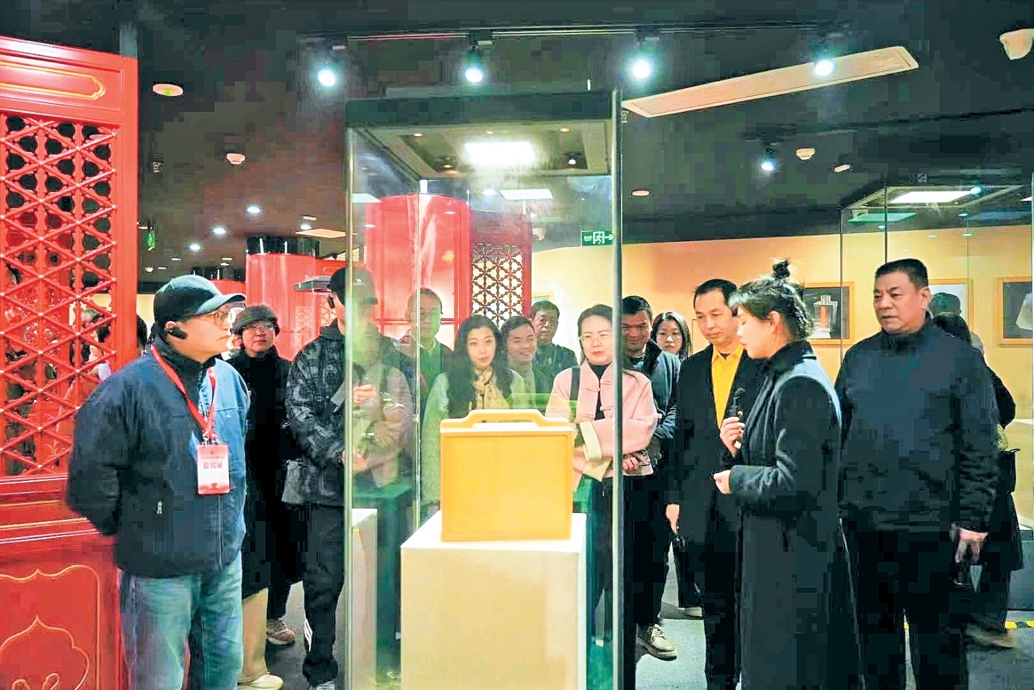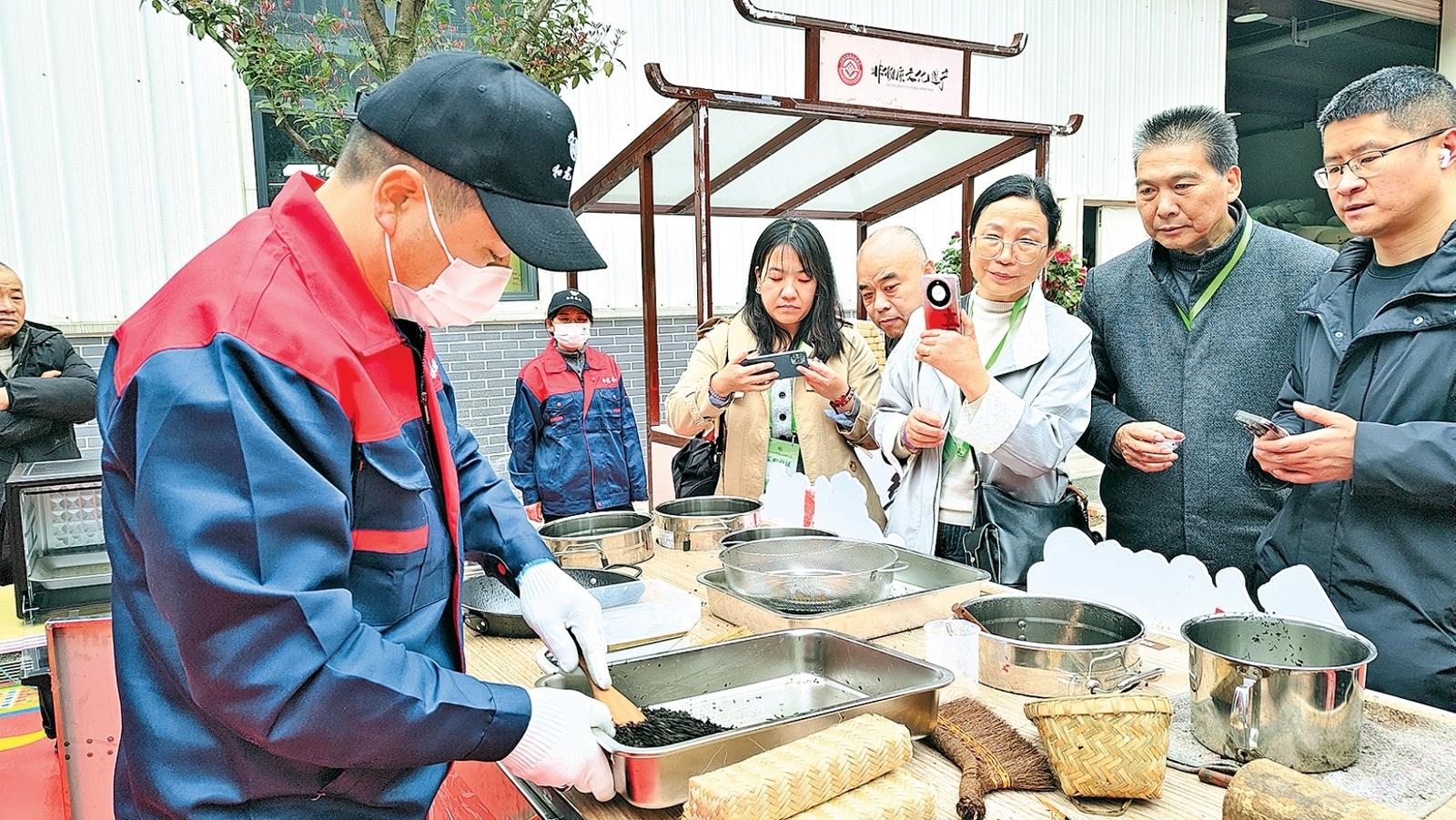 与会嘉宾在雅安市和龙茶业有限公司参观藏茶制作