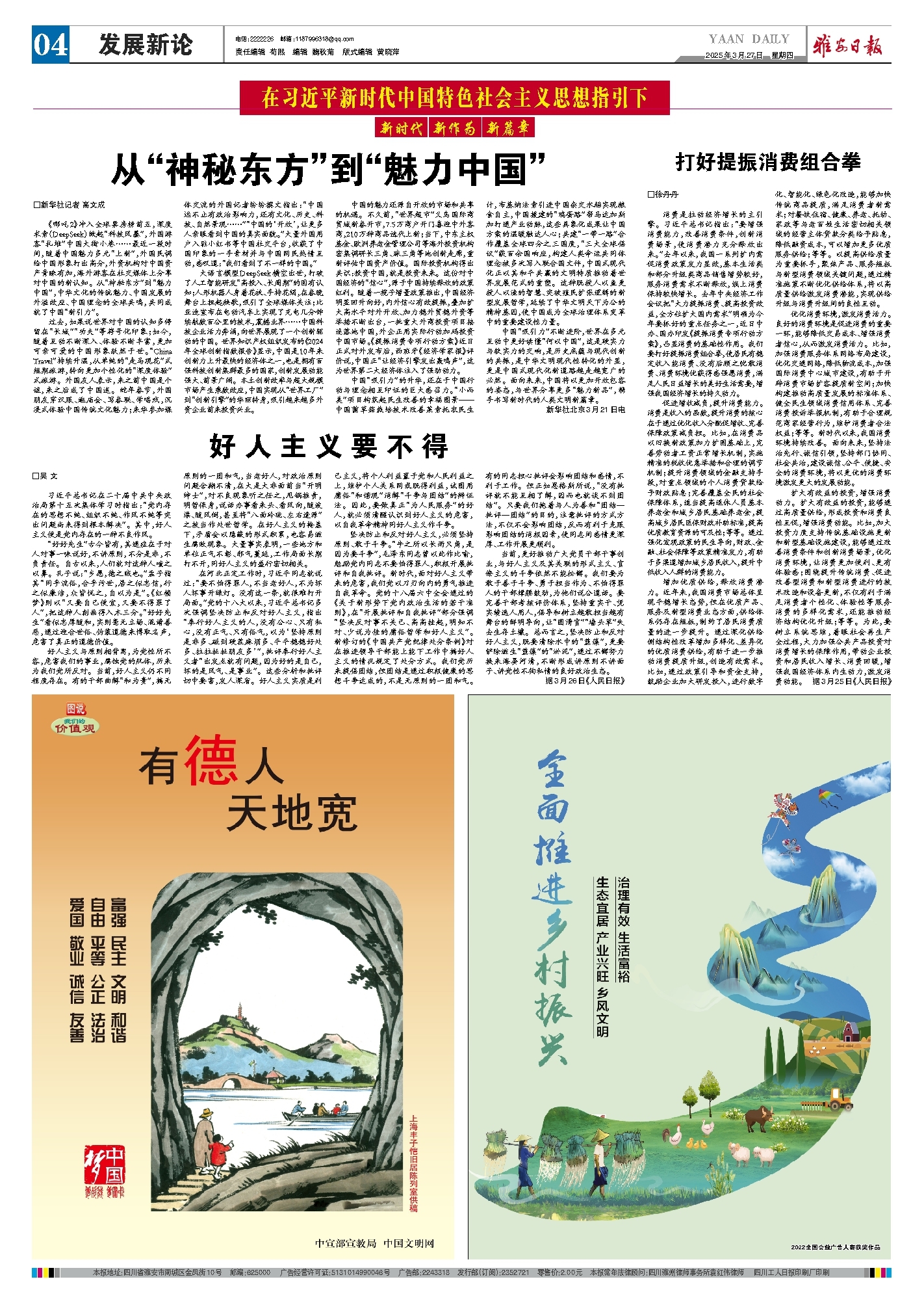 中国“吸引力”不断进阶,世界在多元互动中更好读懂“何以中国”,这是硬实力与软实力的交响,是历史底蕴与现代创新的共振,是中华文明现代性转化的外显,更是中国式现代化新道路越走越宽广的必然。面向未来,中国将以更加开放包容的姿态,与世界分享更多“魅力新品”,携手书写新时代的人类文明新篇章。