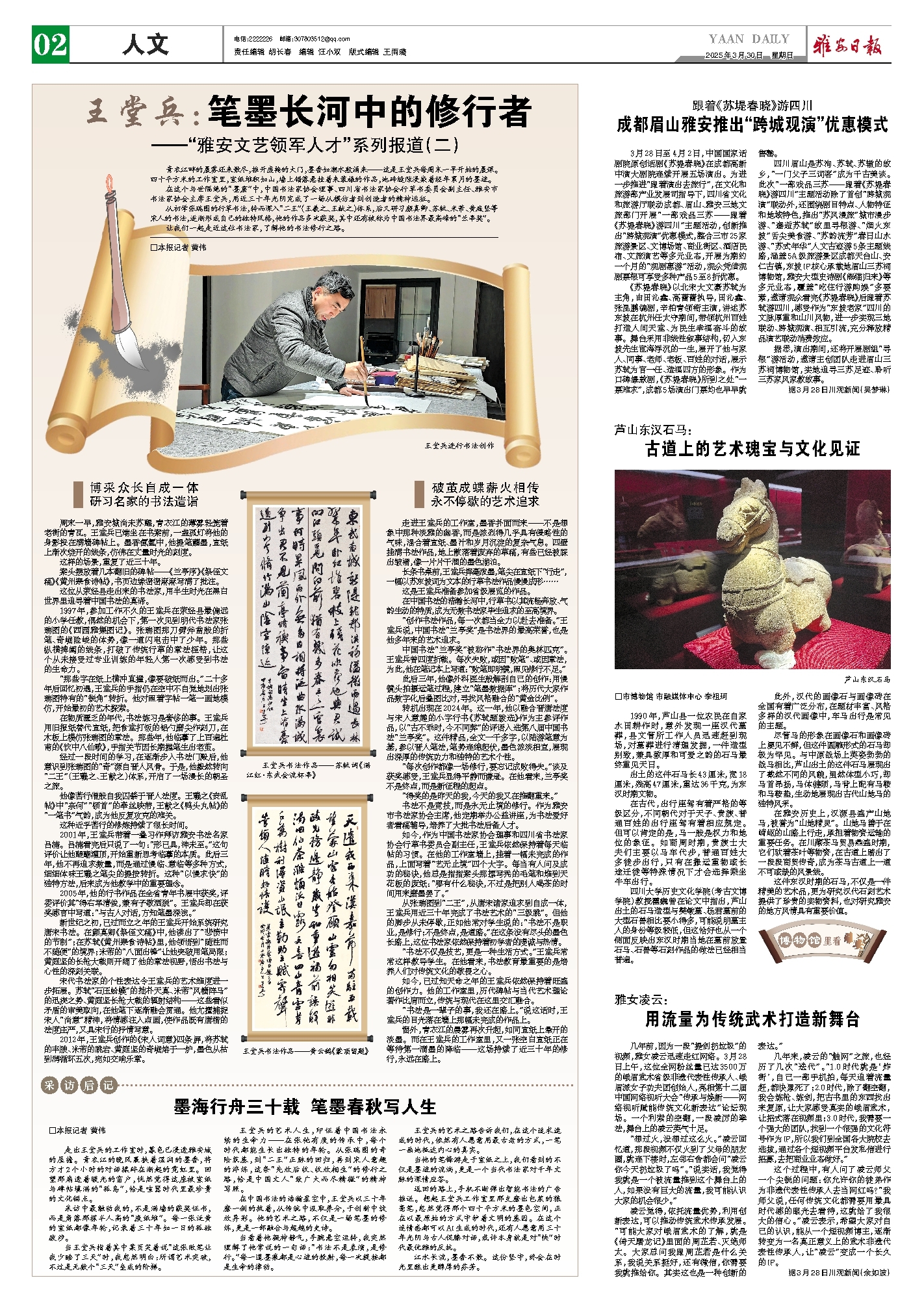 走出王堂兵的工作室时,暮色已浸透雅安城的屋檐。青衣江的晚风裹挟着湿润的墨香,将方才2个小时的对话揉碎在渐起的霓虹里。回望那扇透着暖光的窗户,恍然觉得这座被宣纸与碑帖填满的“孤岛”,恰是喧嚣时代里最珍贵的文化锚点。