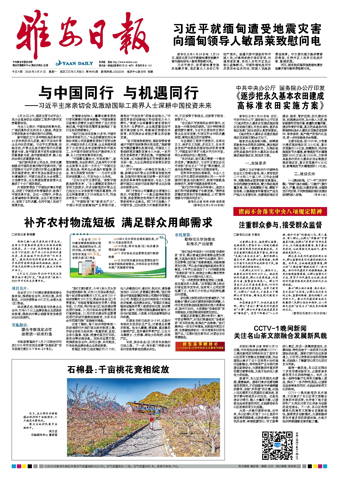 “我们县去年选定5个村实施‘快递到家’项目,群众普遍反映收寄物品更加便捷,尤其是村里的土特产比如腊肉、茶叶、无花果等,在打通了邮寄渠道后,网络销售更加方便。”芦山县交通运输局副局长李玉敏说,今年芦山县选定了5个村继续实施“快递到家”项目,相信会为群众增收带来更多可能,为乡村振兴注入活力。
