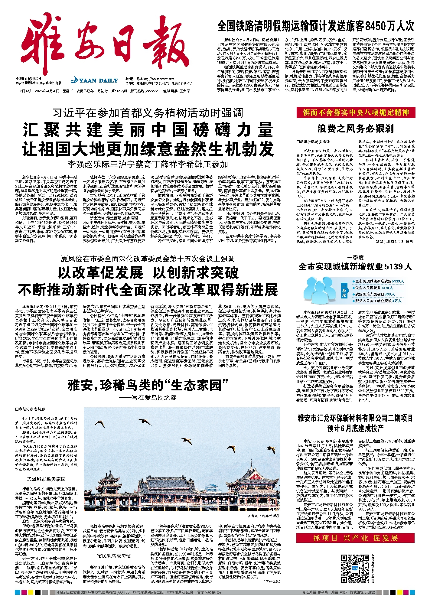 会议强调,要聚力激发市场活力推进改革,高质量完成国有企业改革深化提升行动,以控制成本为核心优化营商环境,深入实施“五项专项治理”,健全促进民营经济和民营企业发展工作机制,进一步增强经济发展内生动力。要紧盯产业创新转型推进改革,攻关大数据、先进材料、高端装备、生物医药等重点领域,突破人工智能、电子信息、智能制造等关键技术,加速培育“链群融合”的产业生态,加快构建现代产业体系。要围绕区域协调发展推进改革,深化融圈协作,加强市域联动,积极推行跨行政区“飞地经济”模式,大力开展链式招商、园区招商、资本招商,促进资源要素互补、区域发展共促。要突出优化资源配置推进改革,强化土地、电力等关键要素保障,促进要素顺畅流动,构建集约高效要素保障体系。要持续加强生态建设推进改革,扎实抓好全域生态产品价值实现机制试点,协同推进问题治理与长效保护,切实筑牢长江上游生态屏障。要抓实防范化解风险推进改革,健全防灾减灾、矛盾纠纷化解、社会稳定长效机制,坚决守牢安全发展底线。要压实责任、提升能力、注重集成、凝聚合力,推动改革落地见效。