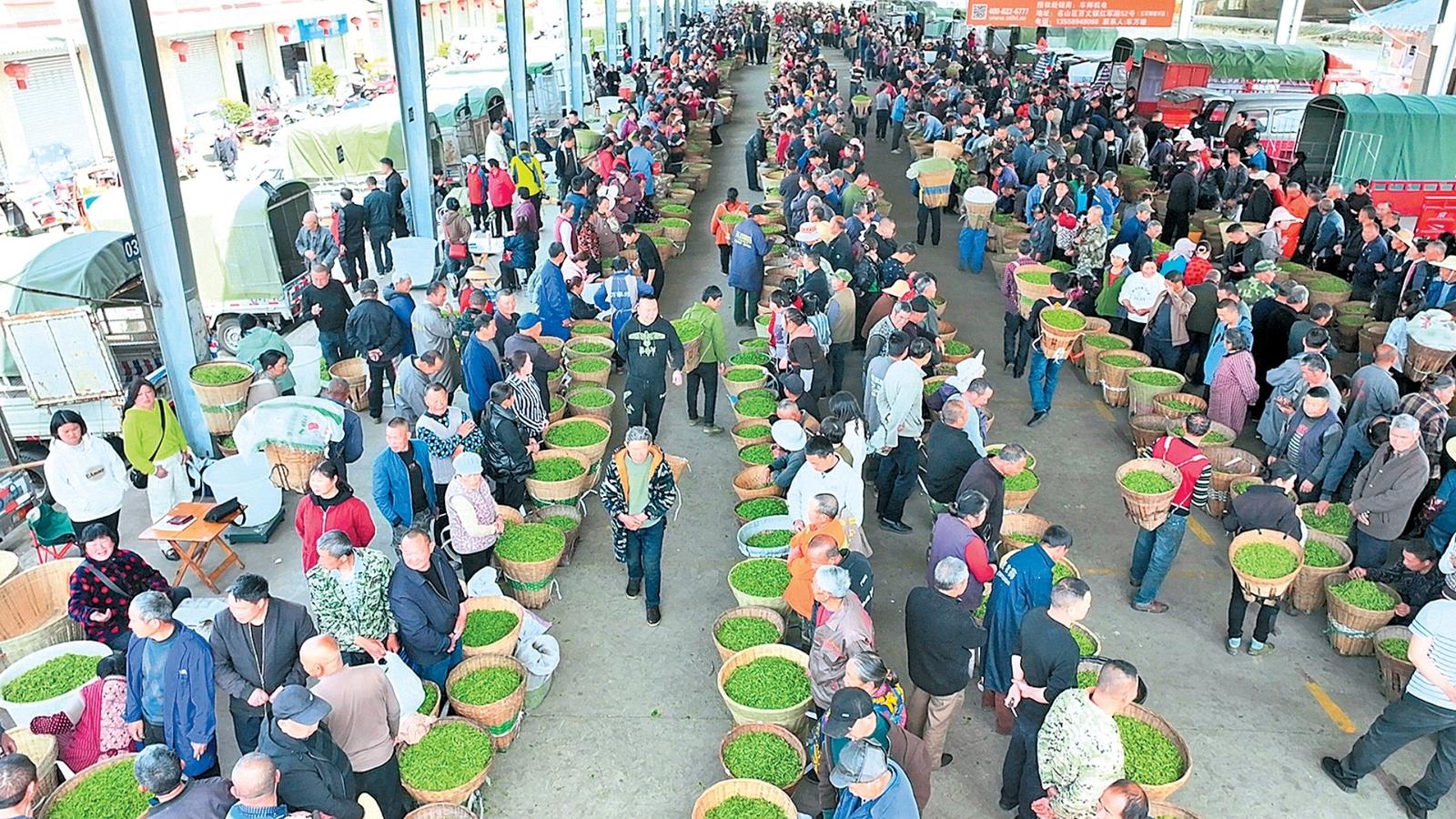 “我们市场上每天有三四千人来卖鲜叶,成交量在2.5万公斤左右。”观音村鲜叶交易市场负责人胡光洪说,作为市场管理方,他们将进一步优化服务细节,保障交易公平,让茶农卖得放心、收购商收得安心,保障市场运转更顺畅。