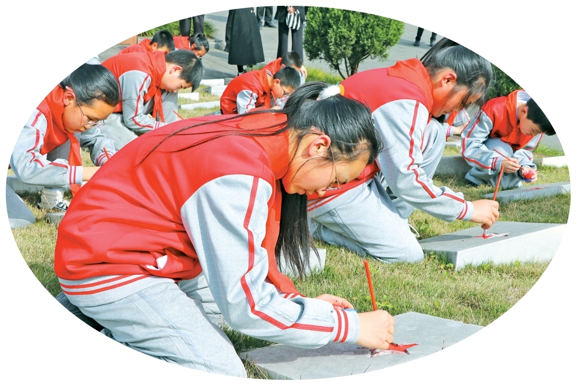 在扫墓现场,部分学生还细心地为烈士墓碑描红。大家手持毛笔,小心翼翼地沿着碑上的字迹仔细涂抹,每一笔都饱含着对英烈的敬重。“我们不放过任何一个角落,只为让烈士们的安息之地一尘不染。”现场,有的学生则拿起抹布,认真擦拭着墓碑上的灰尘。