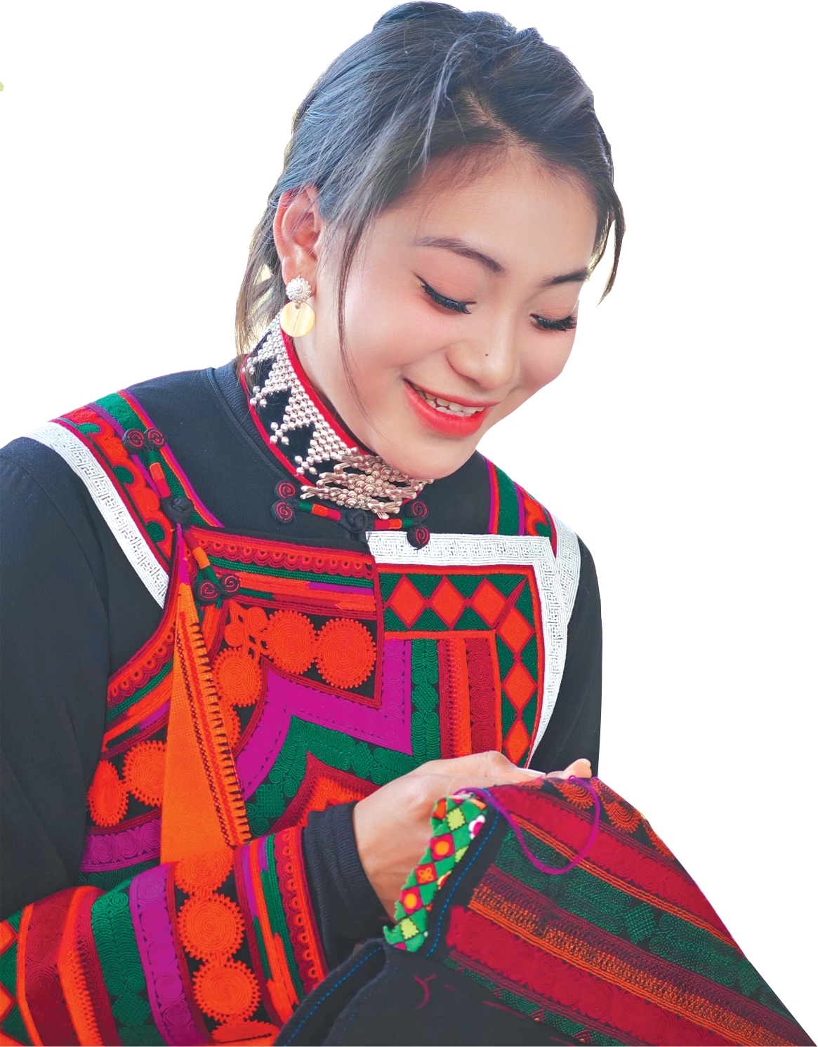 烟峰镇彝族姑娘绣花忙