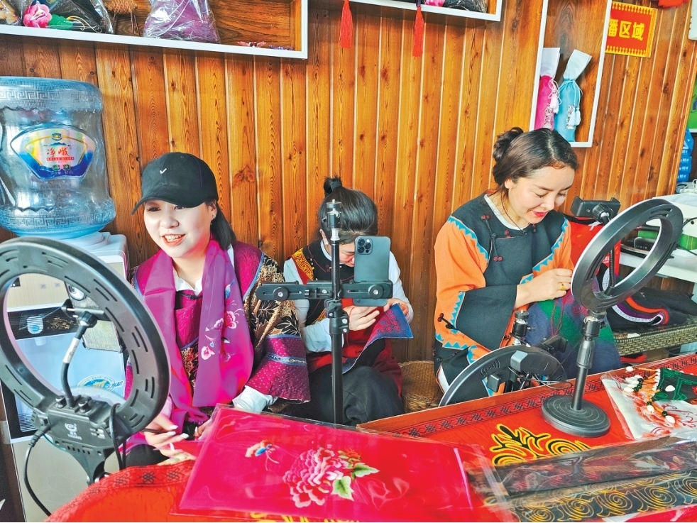 花间刺绣专业合作社成员通过直播销售彝绣产品