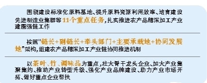 2025年至2027年,有关职能部门将聚焦加工需求、筑牢原料稳供基础,聚焦集群培育、推进产业建圈强链,聚焦创新驱动、引领产业转型升级,坚持市场导向、扩大产品市场份额4个方向,围绕建设标准化原料基地、提升原料资源利用效率、培育建设先进制造业集群等11个重点任务,扎实推进农产品精深加工产业建圈强链工作。
