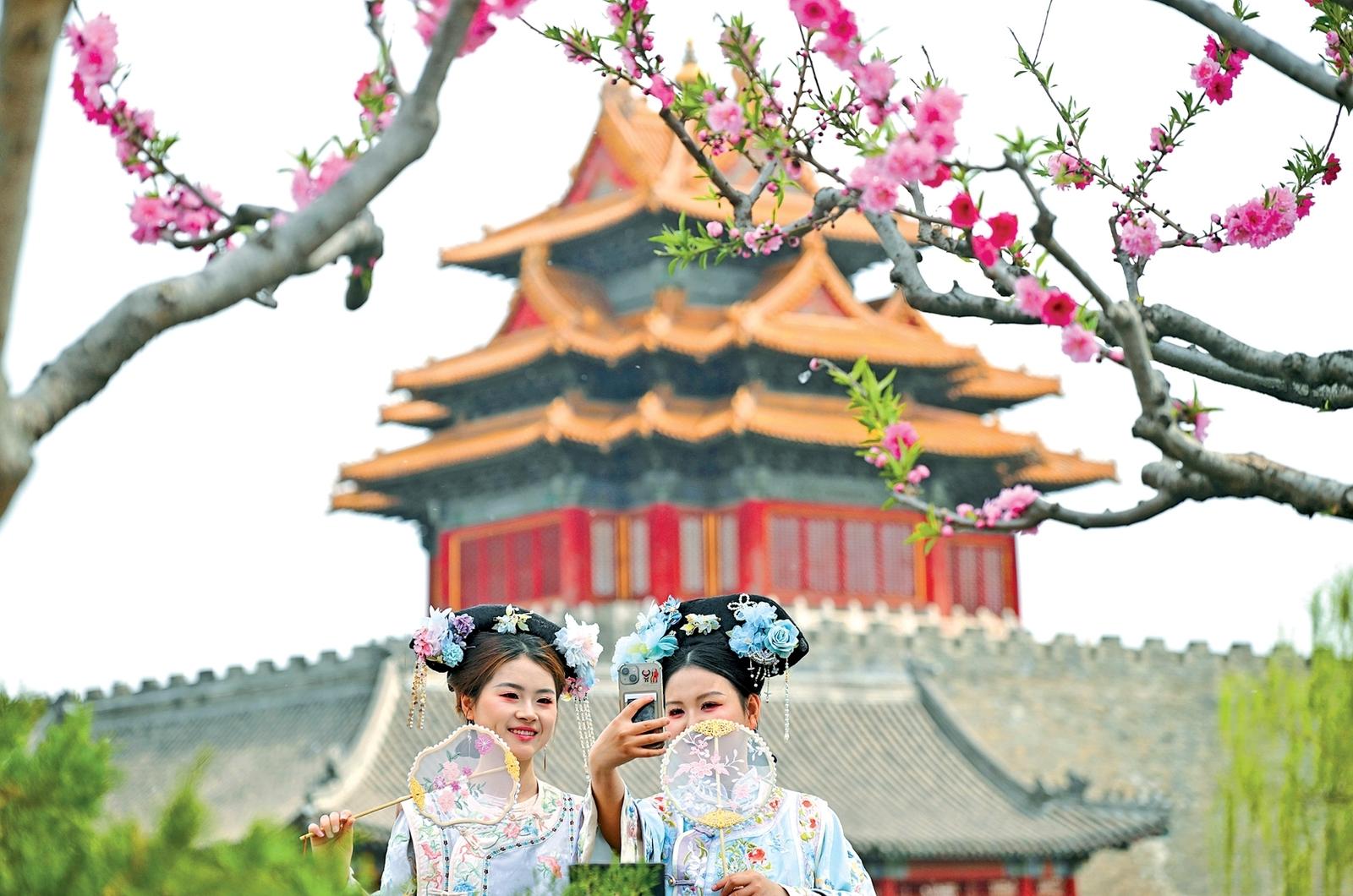 4月8日,两位相识于网上的学生在北京故宫角楼前自拍。她们分别来自河北和浙江,一起来北京游玩。2025年春天,春风和煦,春景烂漫。越来越多的摄影爱好者拿起手机、相机,或给春天留影,或与春天合影,形成一道独特的春日风景线。近年来,随着智能手机摄影技术的提升和社交媒体的普及,全民摄影热情持续高涨。这股“摄影热”不仅丰富了民众文化生活,让更多人感受自然之美、记录美好瞬间,也带动春季旅游消费。
