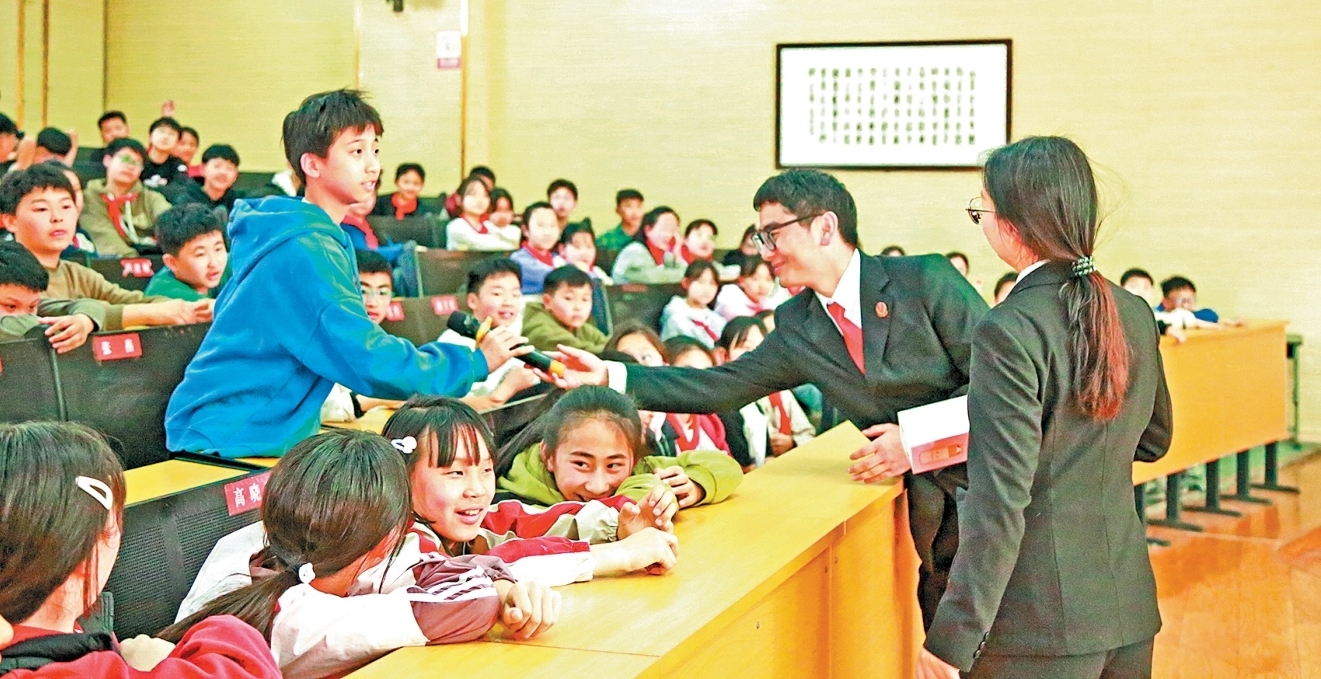 法治公开课上,学生与法院干警互动