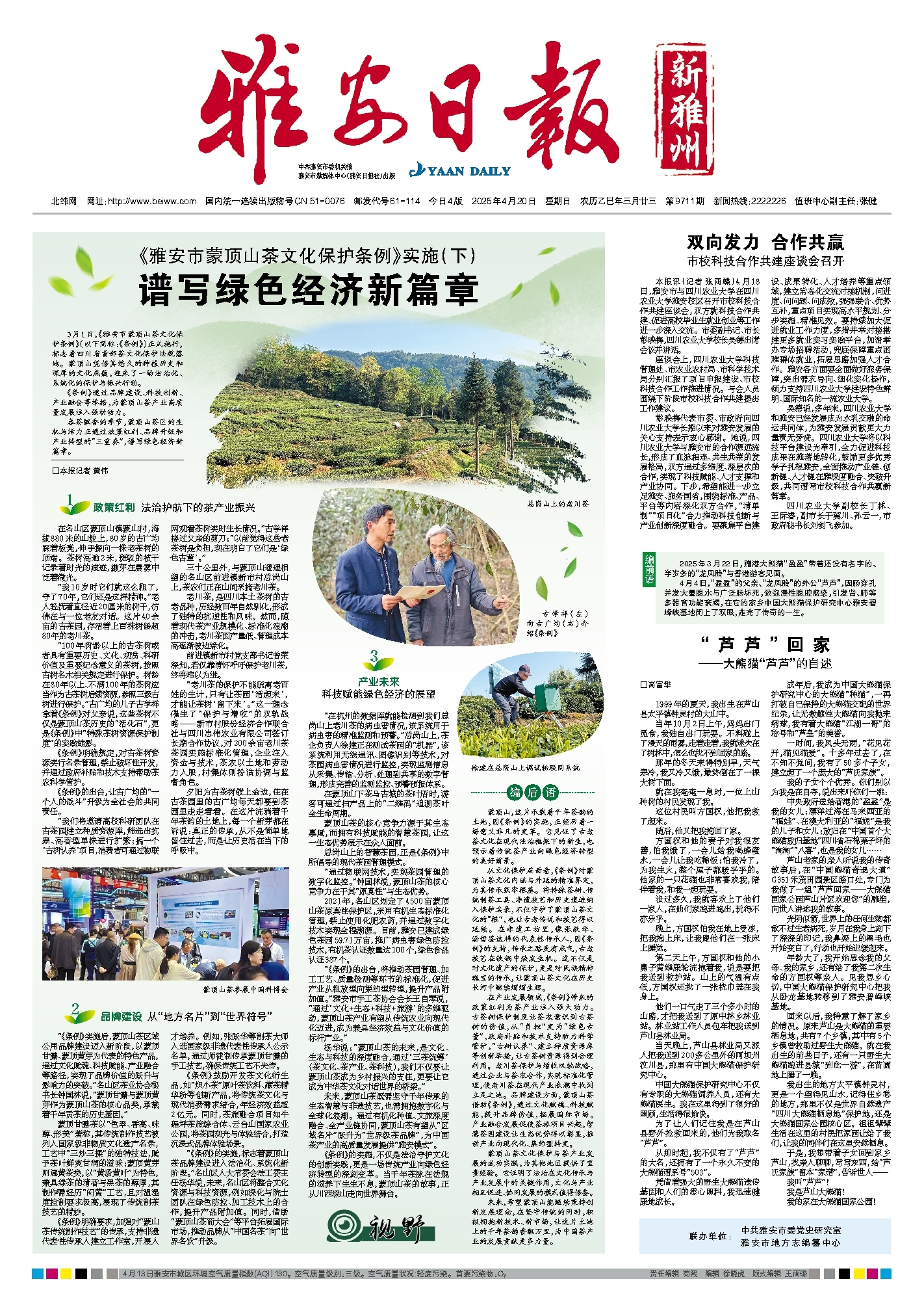 《雅安日报》 (2025年04月20日 第01版)