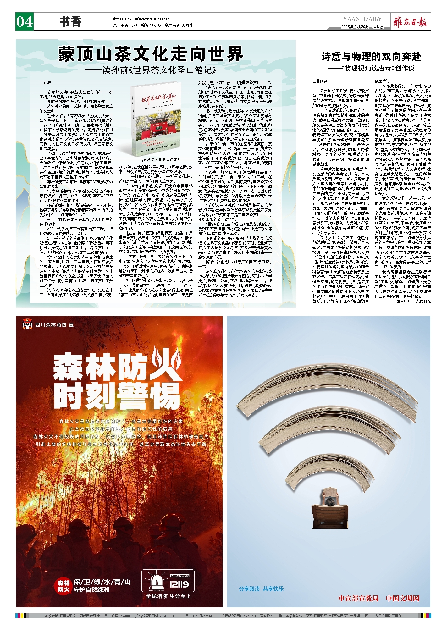 “古人论茶,必首蒙顶。”孙前正是循着“蒙顶山是世界茶文化圣山”这一主题,写自己在雅安工作的经历和四处求索,粗略一看,似乎有些散乱,静下心来阅读,其实是层层展开,步步推进,独具匠心。