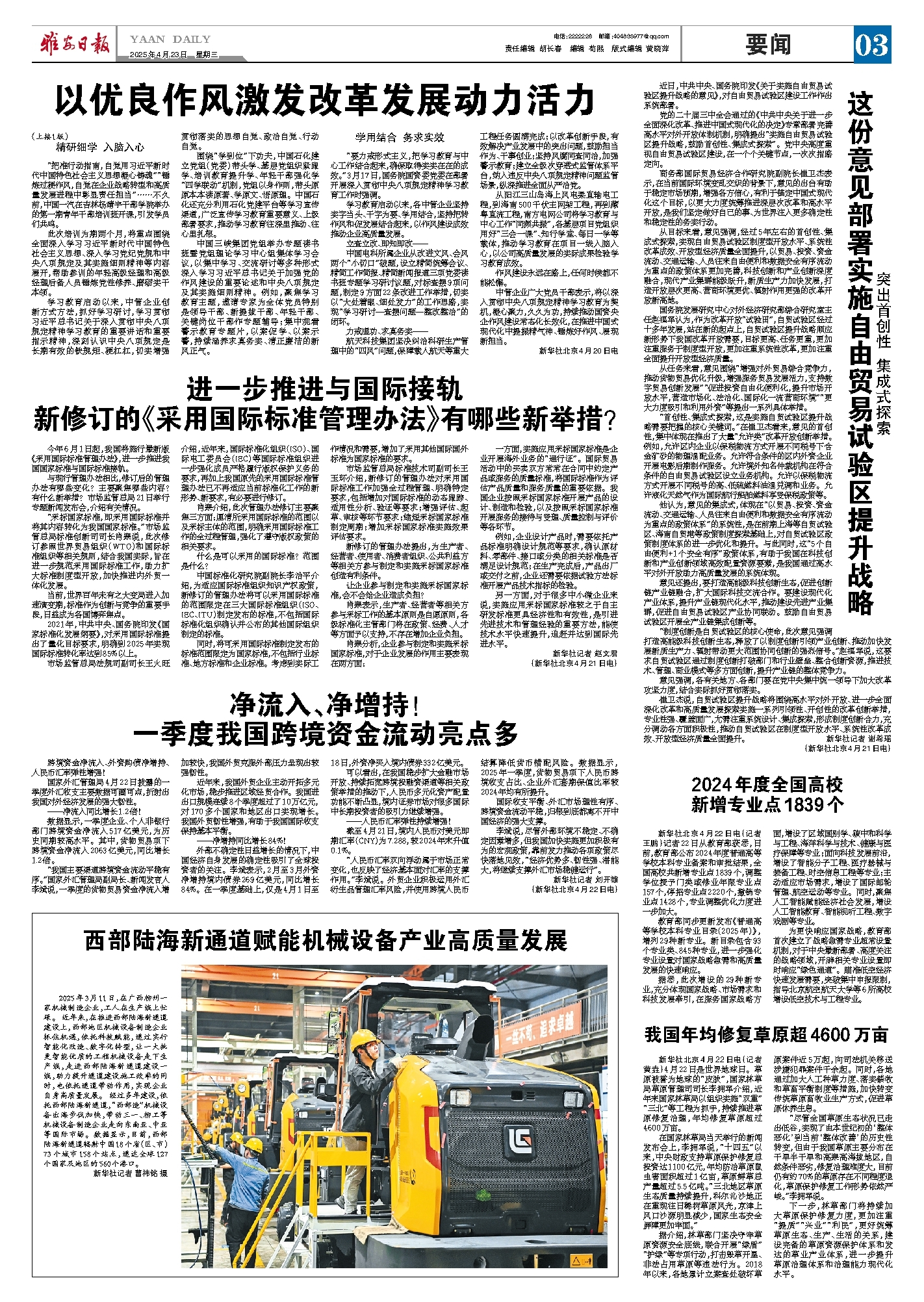 崔卫杰说,自贸试验区提升战略将围绕高水平对外开放、进一步全面深化改革和高质量发展探索实施一系列引领性、开创性的改革创新举措,专业性强、覆盖面广,尤需注重系统设计、集成探索,形成制度创新合力,充分调动各方面积极性,推动自贸试验区在制度型开放水平、系统性改革成效、开放型经济质量全面提升。新华社记者 谢希瑶