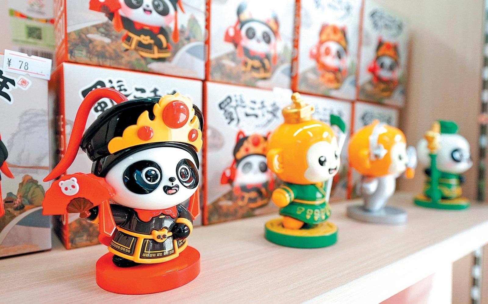 图为4月29日在成都世运会官方特许商品零售店“北京首店”拍摄的蜀运三千年系列商品。