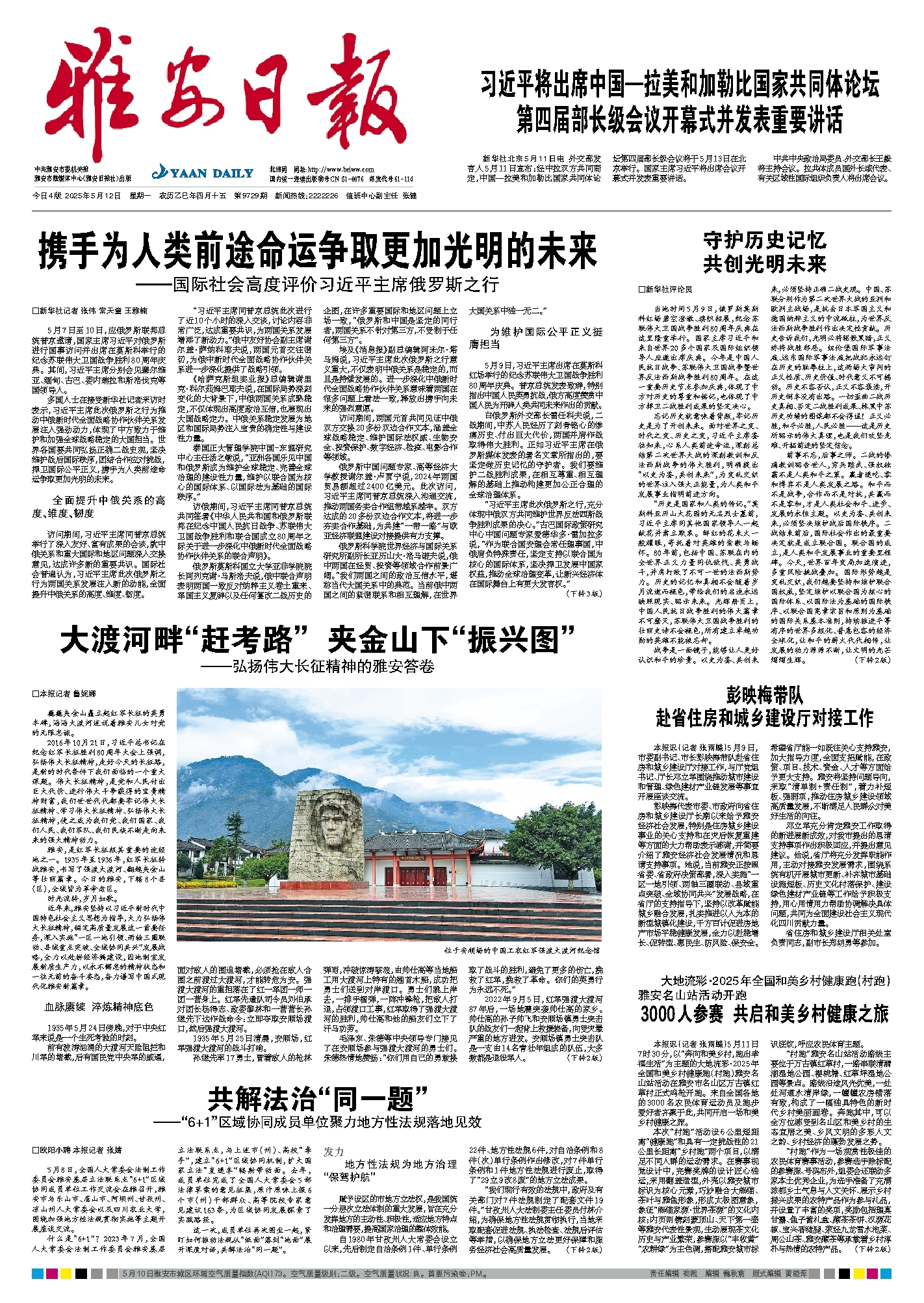 巍巍夹金山矗立起红军长征的英勇丰碑,滔滔大渡河述说着雅安儿女对党的无限忠诚。