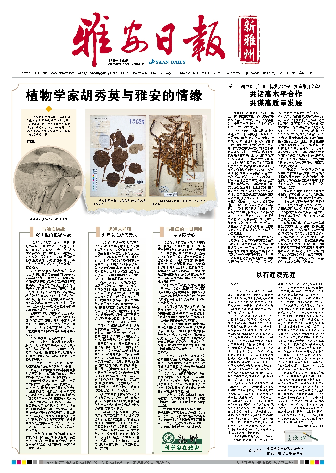 在植物学领域,有一位被誉为“植物学活百科全书”“凉茶专家”“百草婆婆”的国际著名植物学家胡秀英。她的一生与植物研究结下了深厚情缘,更与雅安这片土地有着一段特殊的故事。