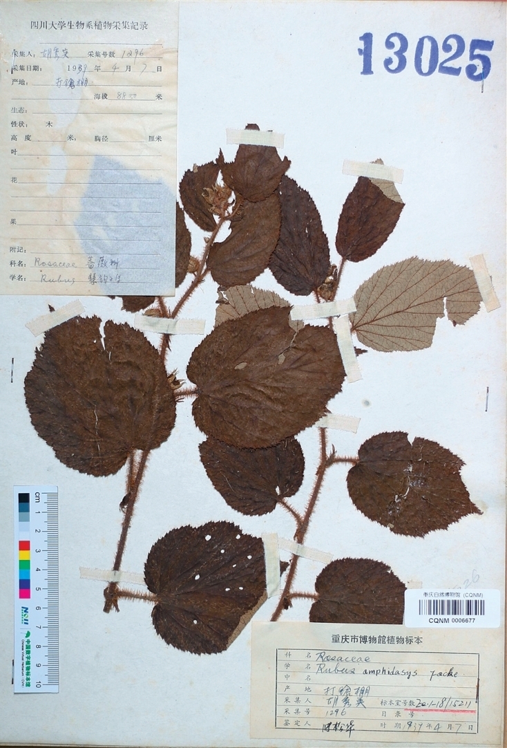 周毛悬钩子标本,胡秀英1939年采集于宝兴县