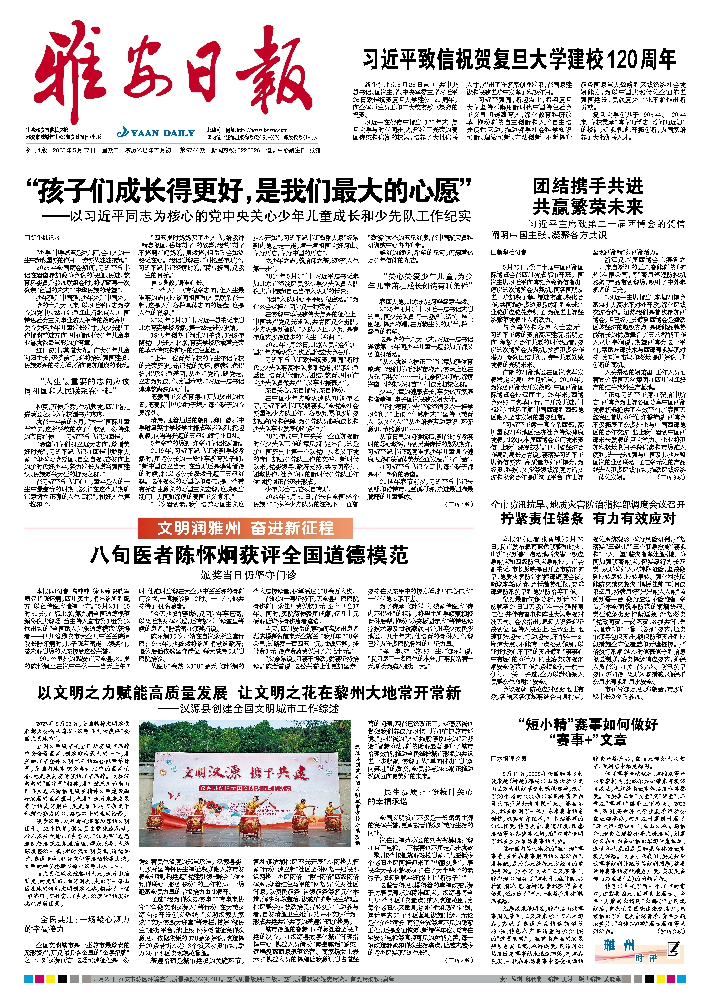 新华社北京5月26日电 中共中央总书记、国家主席、中央军委主席习近平26日致信祝贺复旦大学建校120周年,向全体师生员工和广大校友致以热烈的祝贺。
