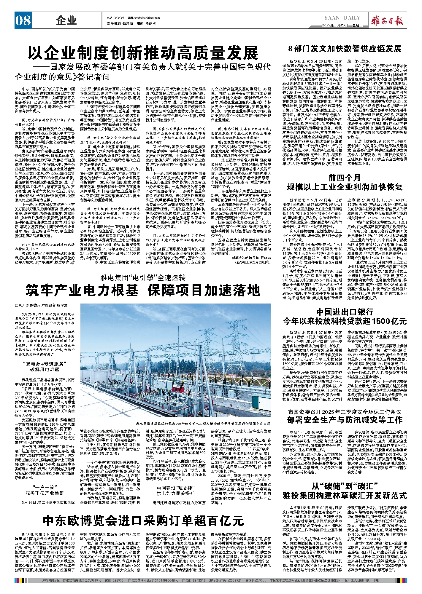 答:近年来,国资央企坚持和加强党的全面领导,牢牢把住国有企业改革发展的正确方向。中央企业集团全部完成“党建入章”,持续健全现代企业制度,有力促进国有企业效率活力的明显提升。
