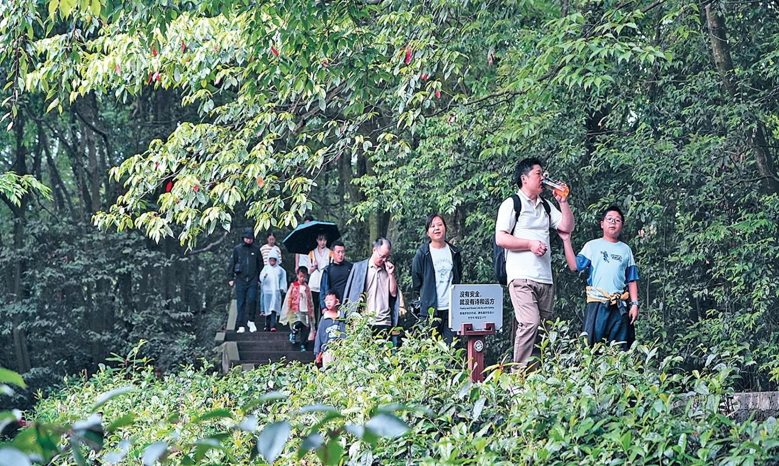 另一方面,碧峰峡、蒙顶山、龙苍沟、喇叭河、古路村等景区景点吸引了大量游客。他们走入大自然,来了一场说走就走的徒步旅行,在青山绿水间放松身心,感受大自然的美好。