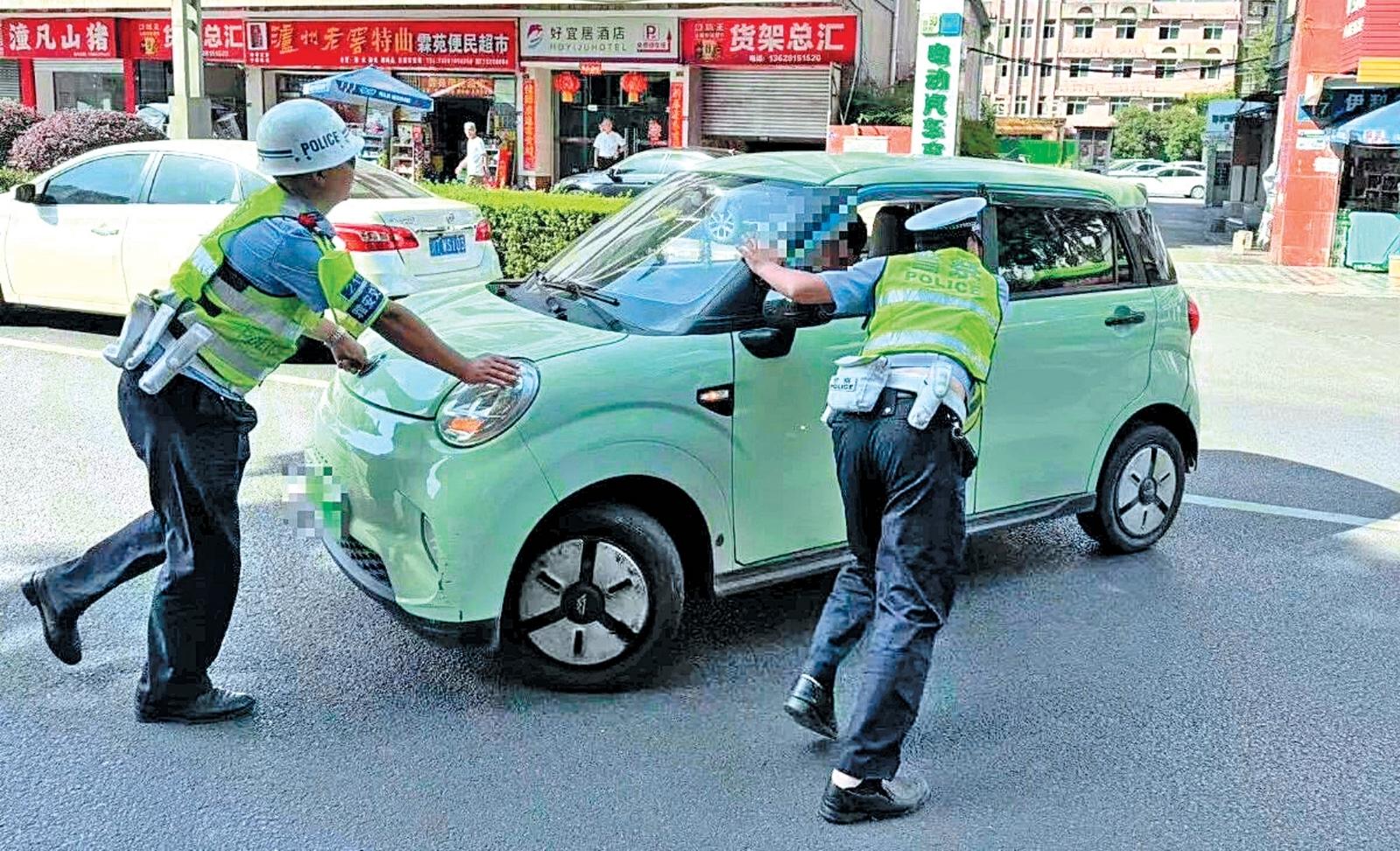 执勤交警立即停车上前了解情况,经核实,该车辆在路口突然发生故障无法继续行驶,执勤交警立即帮助群众将车推至安全地点等待修理。