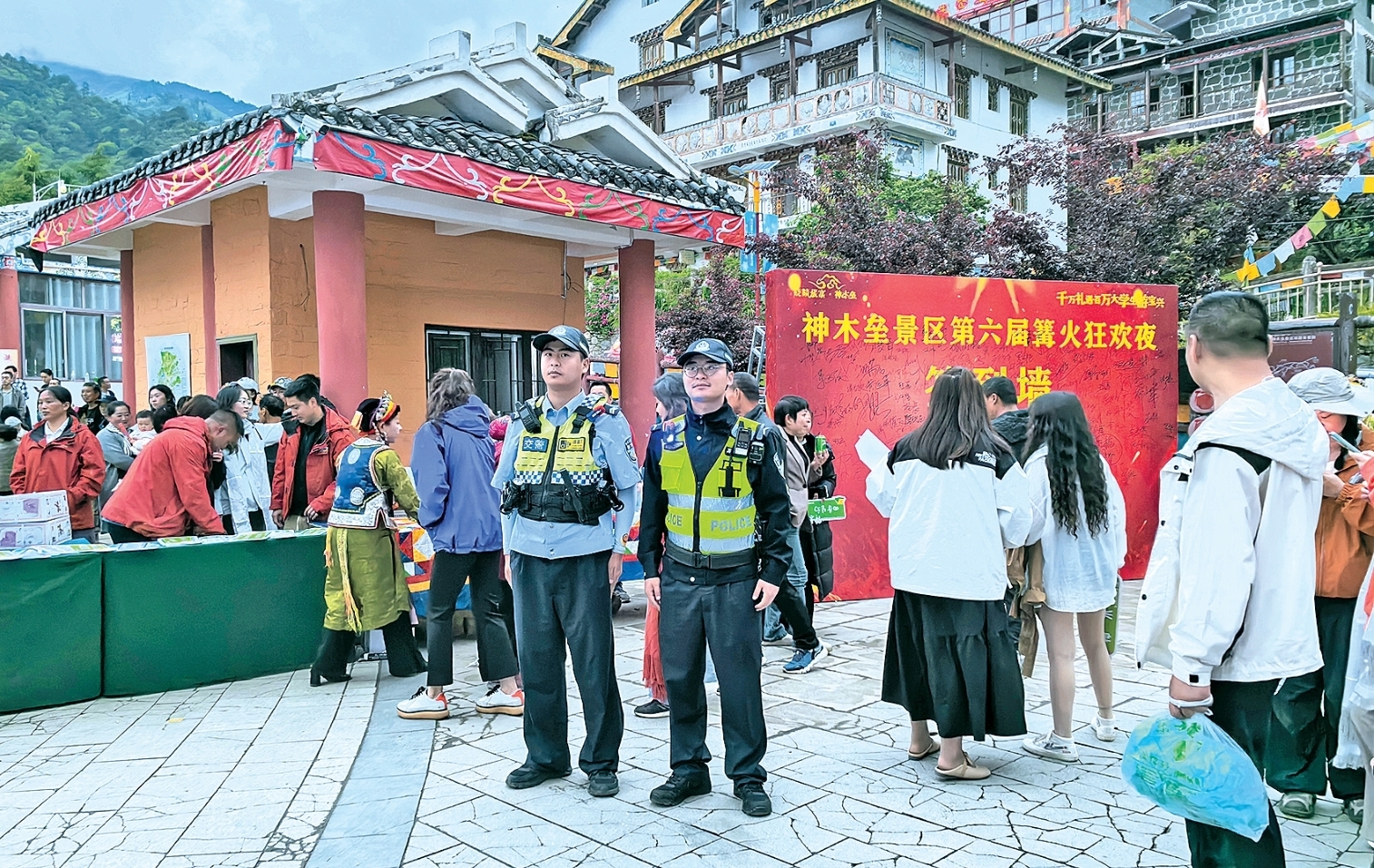 本报讯(宝兴公安 记者 李晓明)6月21日,“重走长征路——翻越夹金山”徒步活动在宝兴县举行,吸引了来自全国各地的130名专业登山徒步爱好者参与。当天晚上,硗碛藏寨·神木垒第六届篝火狂欢夜在宝兴县硗碛藏族乡五寨园广场激情上演。作为承载红色文化、民族文化的重要活动,本次活动吸引了大批群众和游客参与,现场人潮涌动、气氛热烈。为确保活动安全有序,宝兴县公安局高度重视、提前谋划,统筹各警种力量,圆满完成当日“重走长征路——翻越夹金山”徒步活动和篝火晚会活动安保任务。