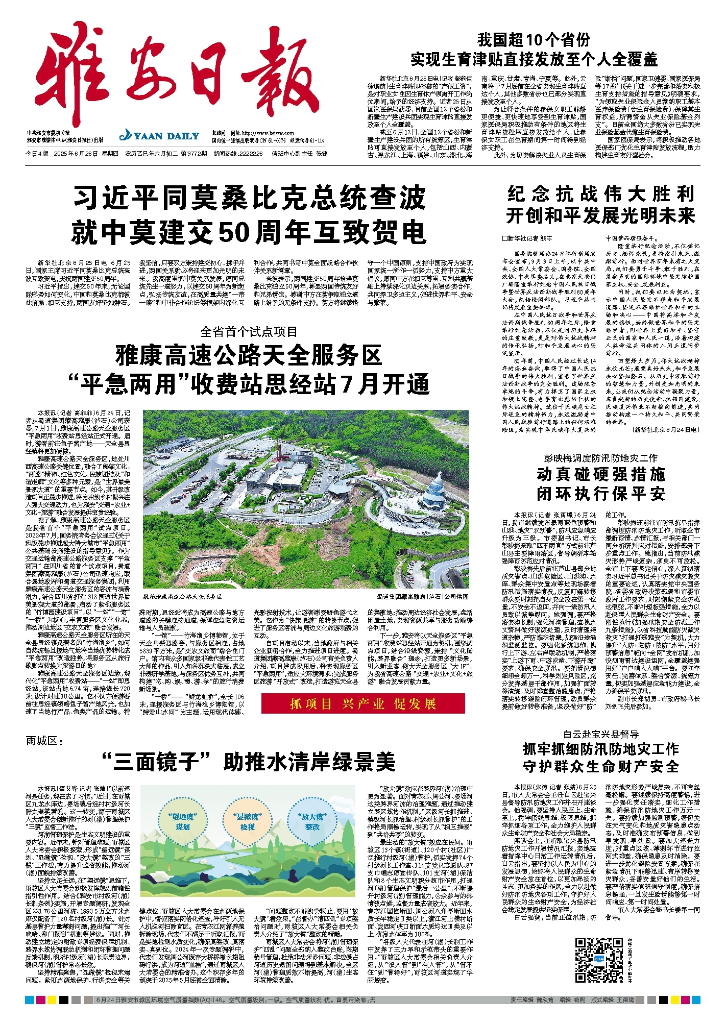 本报讯(记者 高菲菲)6月24日,记者从蜀道集团藏高雅康(泸石)公司获悉,7月1日,雅康高速公路天全服务区“平急两用”收费站思经站正式开通。届时,游客前往鱼子酱产地——天全县思经镇将更加便捷。