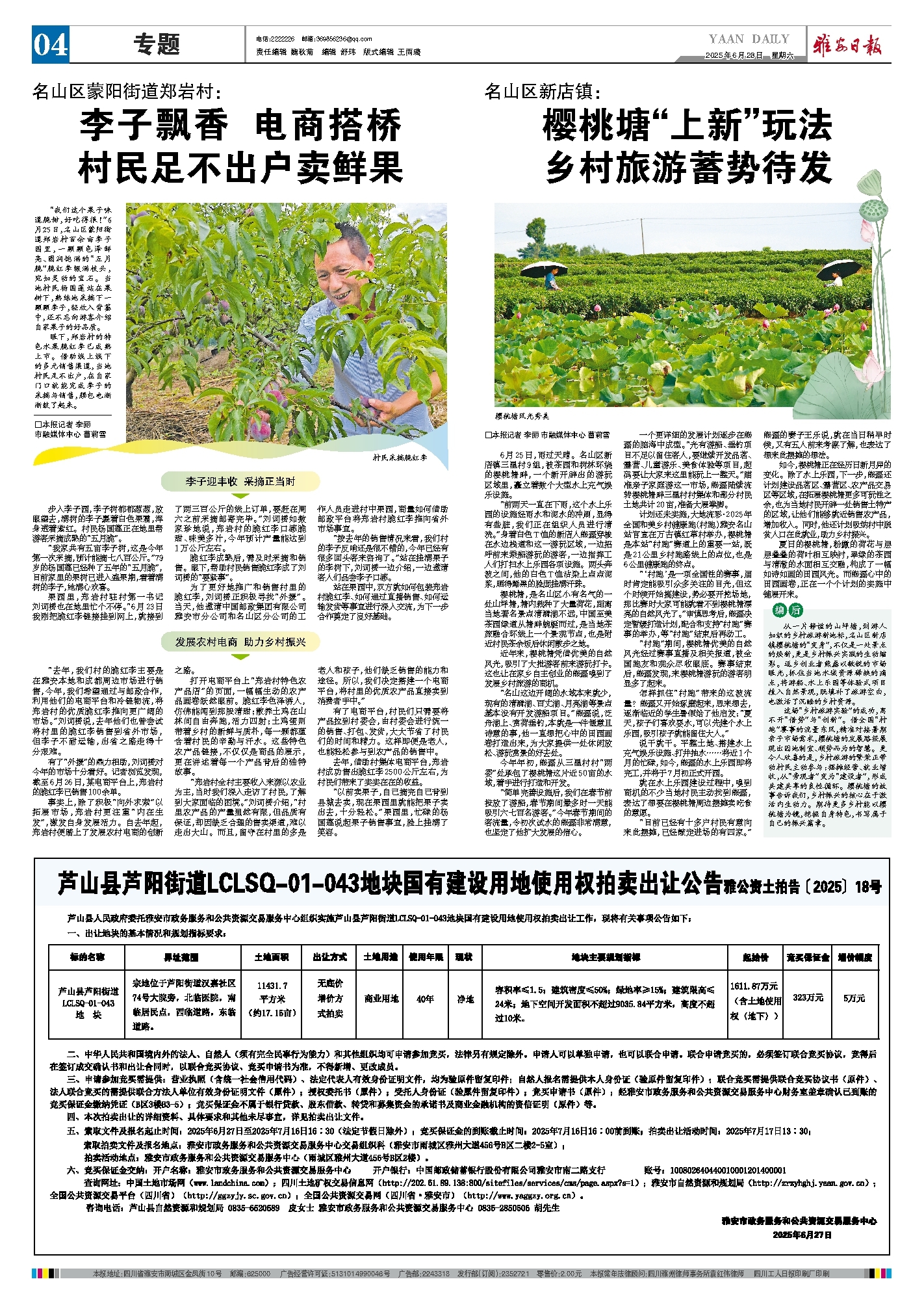 果园里,郑岩村驻村第一书记刘词赟也在地里忙个不停。“6月23日我刚把脆红李链接挂到网上,就接到了两三百公斤的线上订单,要赶在周六之前采摘邮寄完毕。”刘词赟如数家珍地说,郑岩村的脆红李口感脆甜、味美多汁,今年预计产量能达到1万公斤左右。