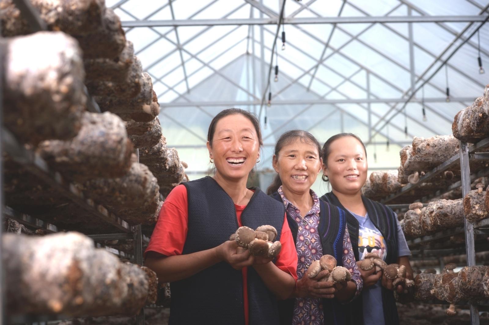 2021年,国网四川省电力公司在石棉县栗子坪彝族乡发展香菇产业扶贫项目,村民们喜获丰收