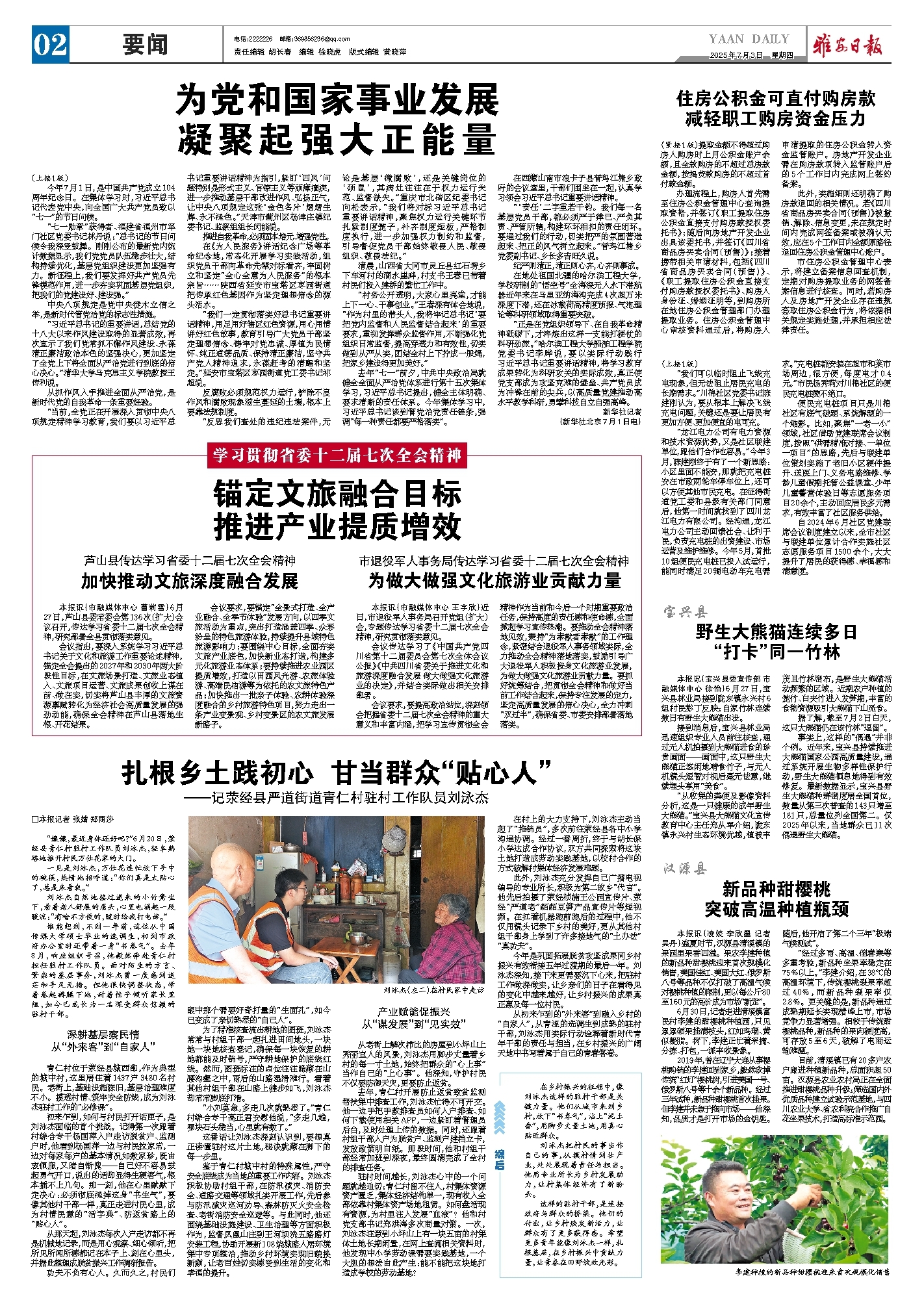 会议指出,要深入系统学习习近平总书记关于文化和旅游工作重要论述精神,锚定全会提出的2027年和2030年两大阶段性目标,在文旅场景打造、文旅业态植入、文旅项目运营、文旅成果创收上谋在前、做在实,切实将芦山县丰厚的文旅资源禀赋转化为经济社会高质量发展的强劲动能,确保全会精神在芦山县落地生根、开花结果。