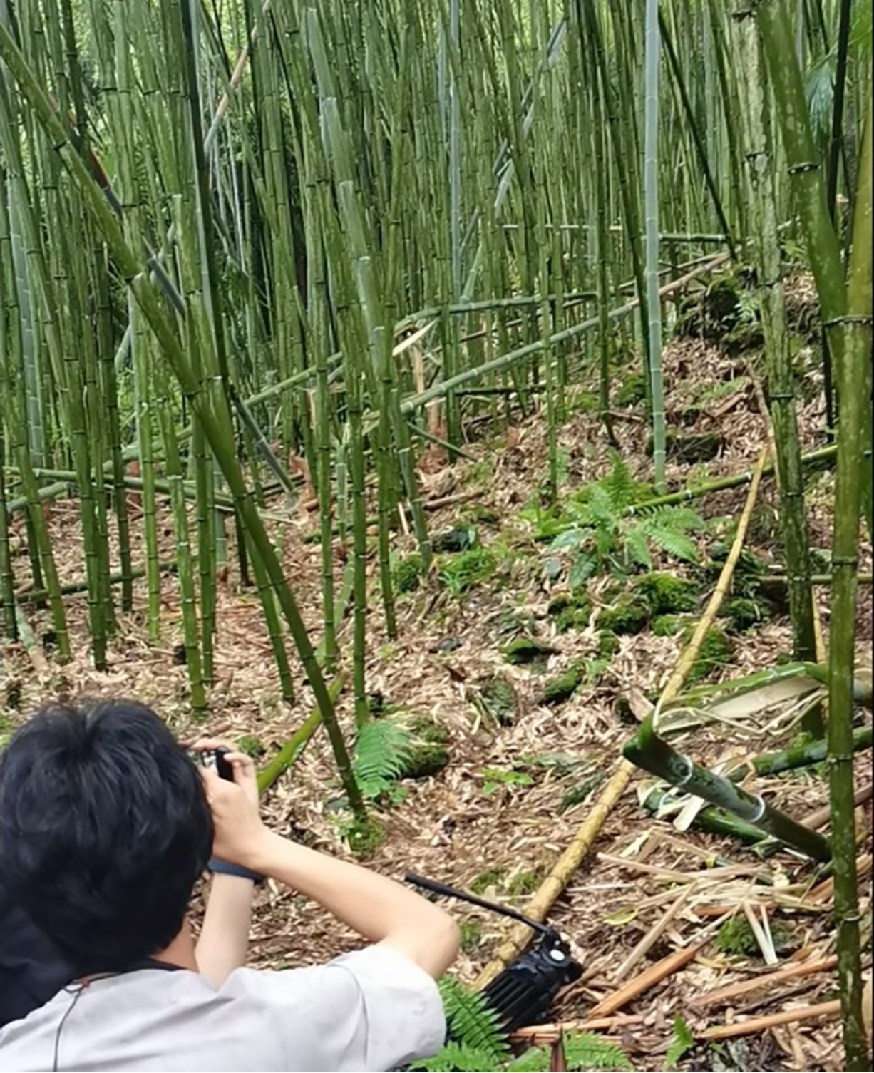 记者正在拍摄竹林中的野生大熊猫 市融媒体中心 向波 李泳成 摄