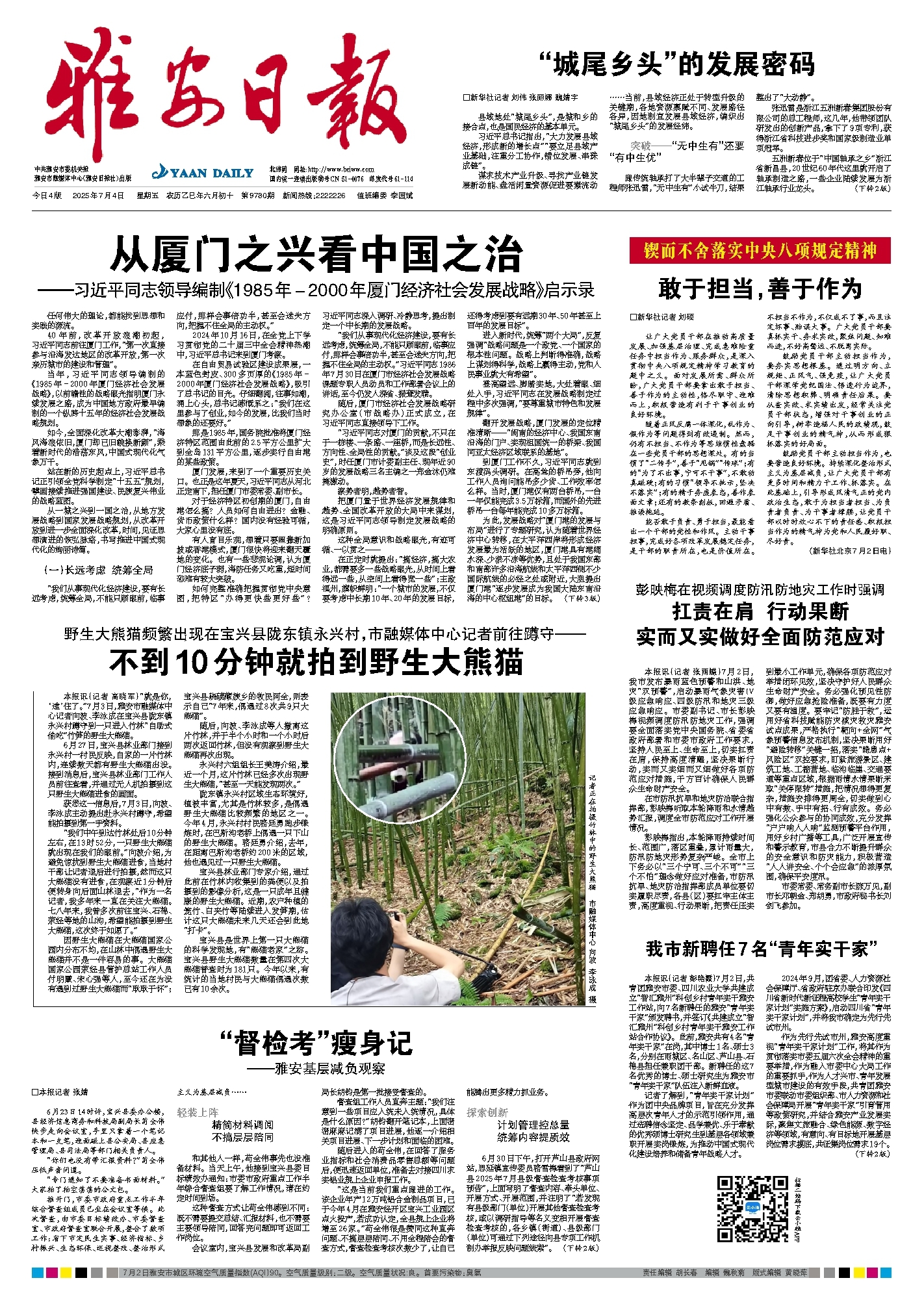 本报讯(记者 高晓军)“就是你,‘逮’住了。”7月3日,雅安市融媒体中心记者向波、李泳成在宝兴县陇东镇永兴村蹲守到一只进入竹林“自助式偷吃”竹笋的野生大熊猫。