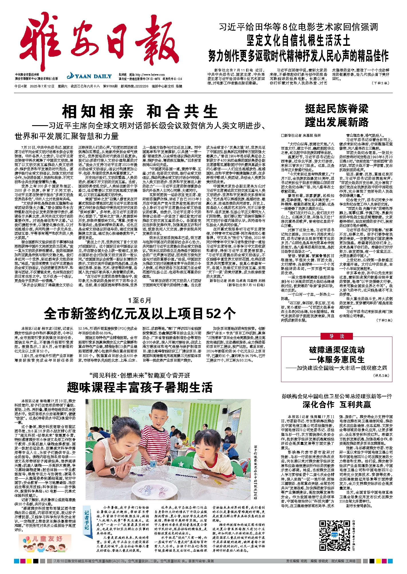 雅安科技馆和雨城区图书馆的这次夏令营虽然每期只有30个名额,却如同投入水面的纸花,在我市建设国家儿童友好城市的进程中漾开层层温暖的涟漪,映照着每个孩子被珍视的权利,以及一座城市俯身倾听时最动人的姿态。
